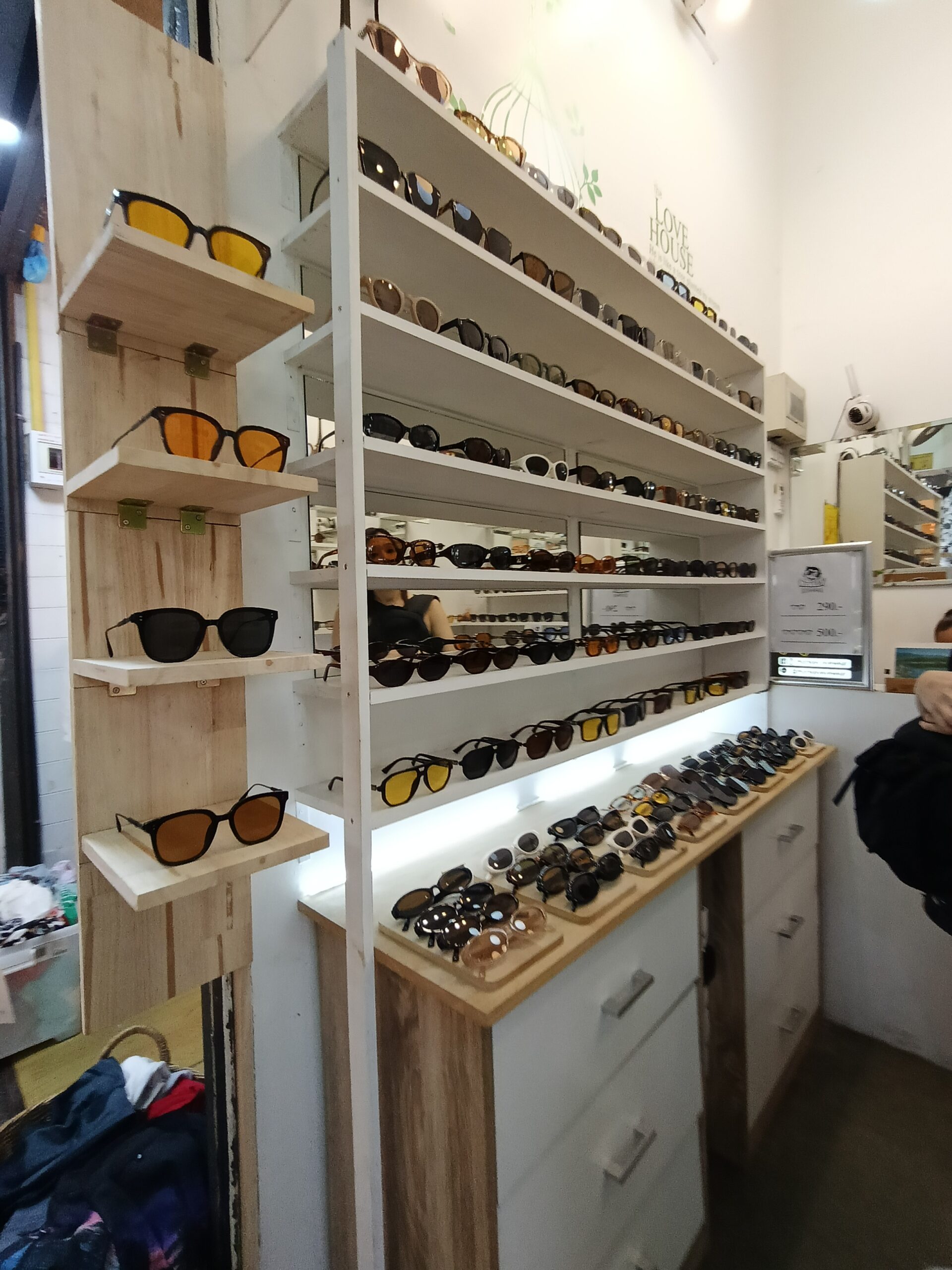 Cửa hàng này là một tiệm kính mắt chuyên bán gọng kính thuốc và kính râm thời trang.