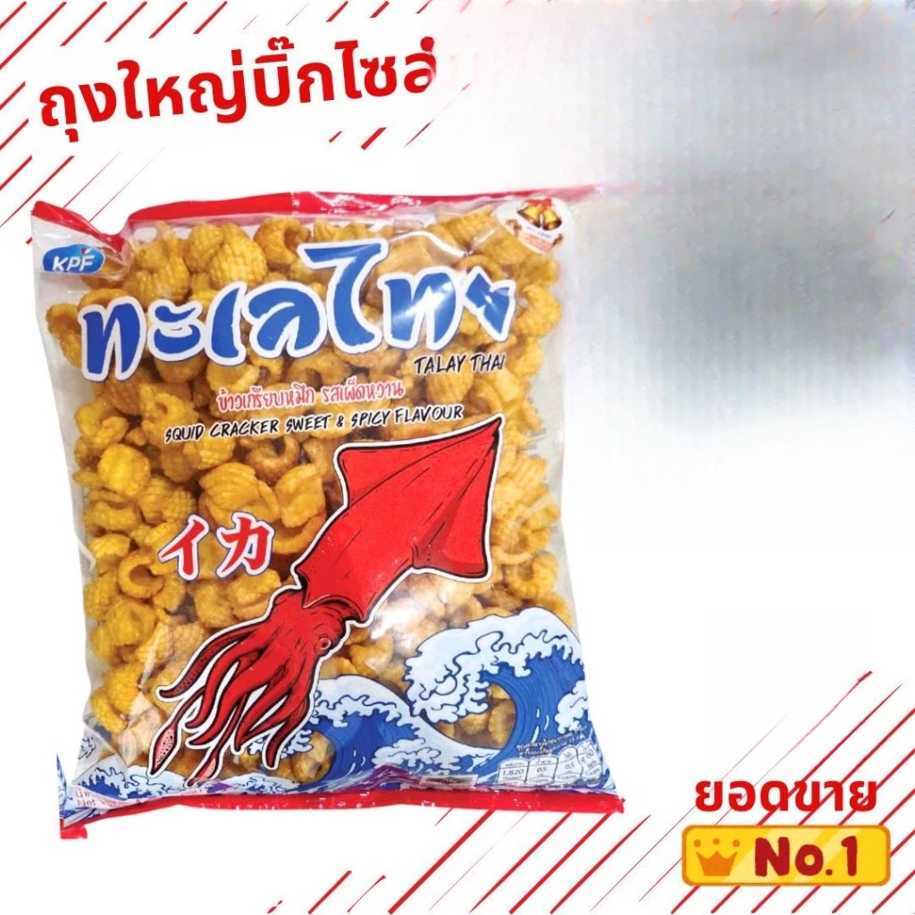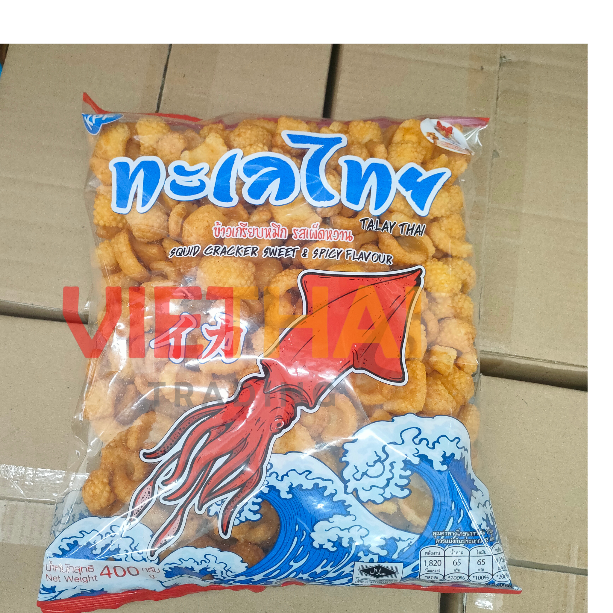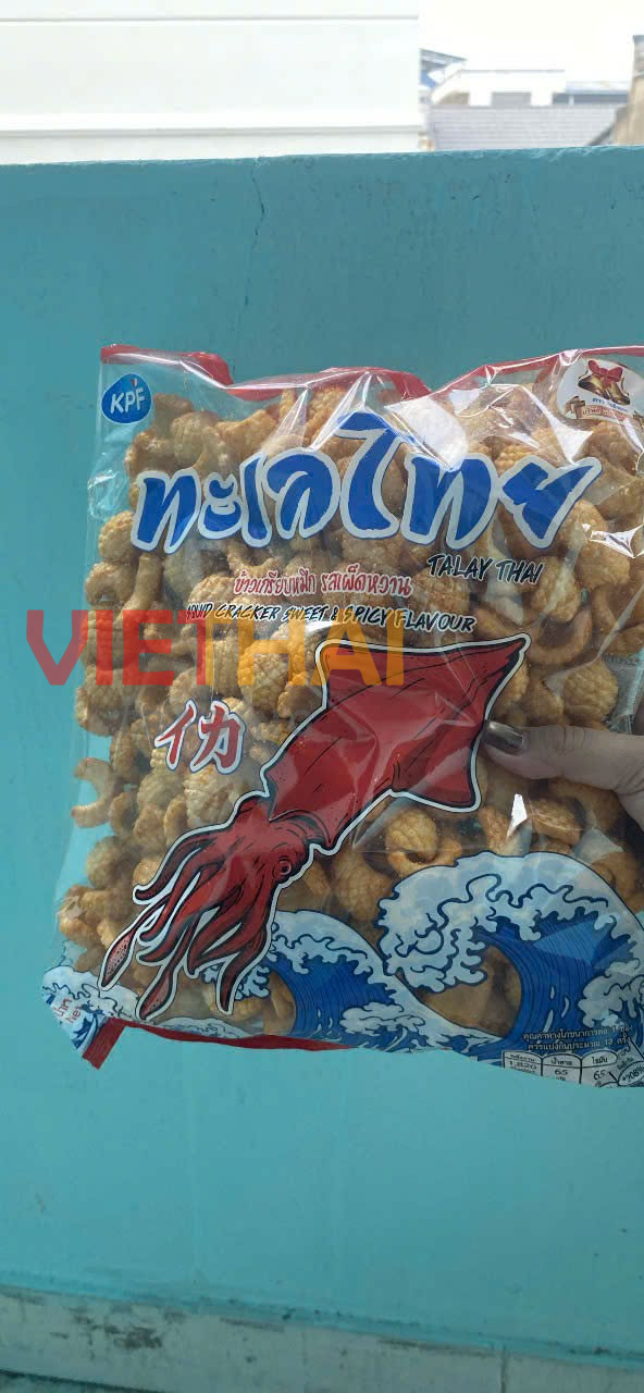Bánh phồng tôm mực Talay Thai (Talay Thai Prawn Cracker Squid Roasted Flavour) là món ăn vặt nổi tiếng và được yêu thích tại Thái Lan, với hương vị đậm đà và độ giòn tan hấp dẫn. Sản phẩm này kết hợp hương vị của tôm và mực nướng, mang lại trải nghiệm ẩm thực chuẩn vị hải sản Thái Lan.