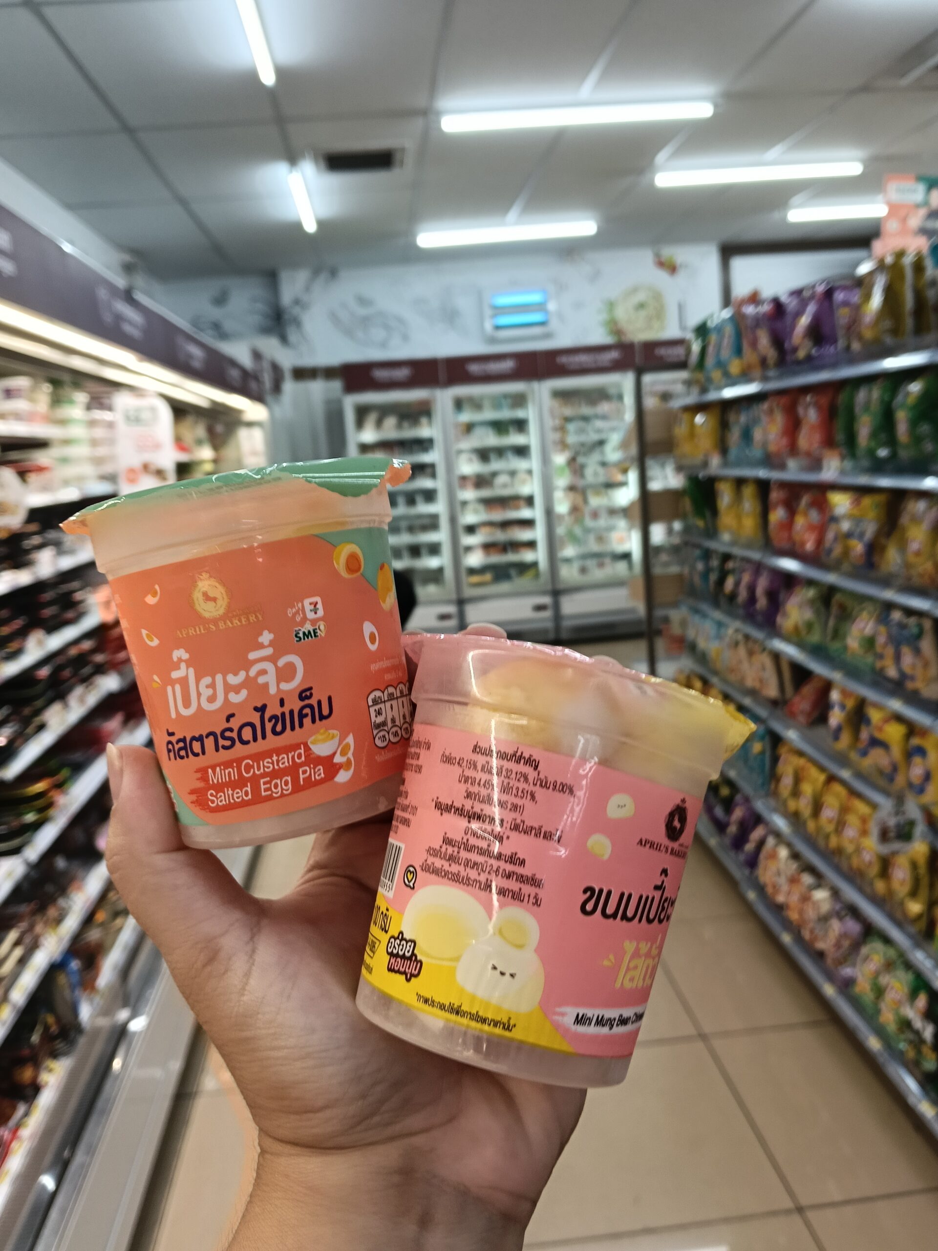 Bánh Pía mini (Chinese Cake) của April’s Bakery, một thương hiệu bánh nổi tiếng ở Thái Lan. Những chiếc bánh nhỏ xinh này là món ăn vặt phổ biến và dễ dàng tìm thấy tại các cửa hàng tiện lợi 7-Eleven.