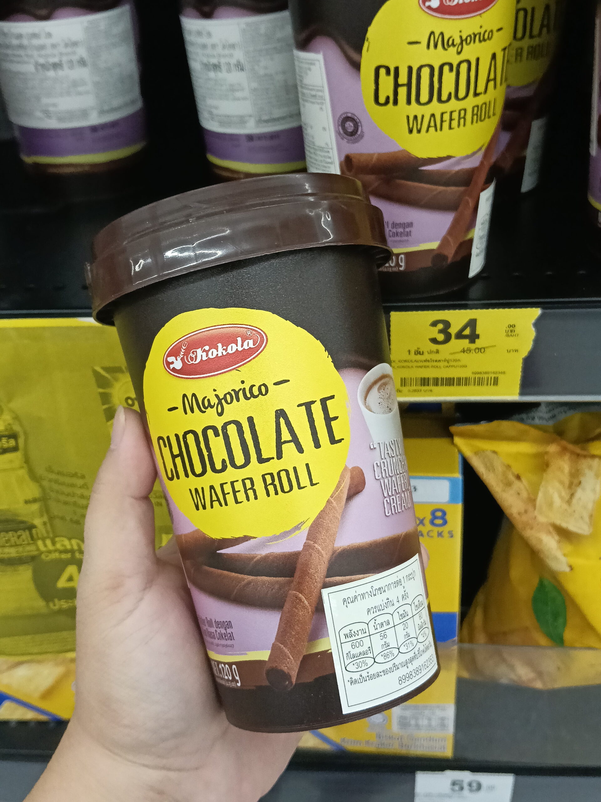 Bánh quế Majorico Chocolate từ thương hiệu Kokola (Indonesia), phiên bản “best-seller” bên cạnh vị Cappuccino mà chúng ta vừa xem qua. Đây là món ăn vặt kinh điển dành cho những tín đồ trung thành của sô-cô-la đậm đà.