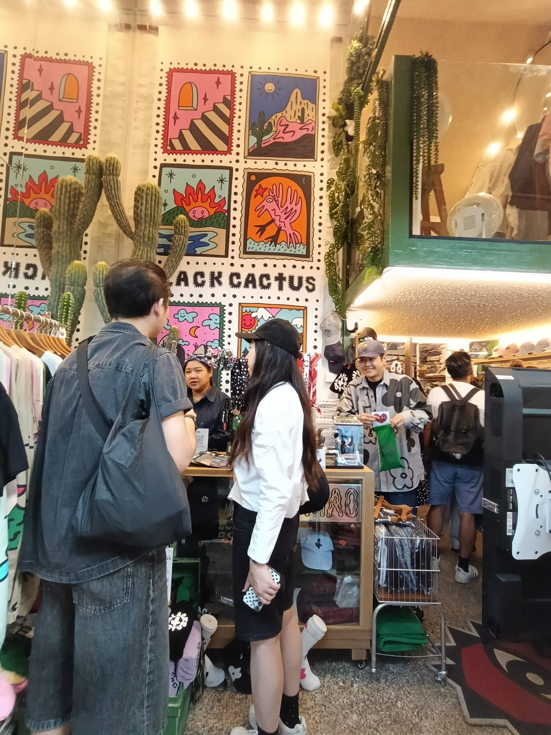 Cửa hàng trong ảnh là Black Cactus, một thương hiệu thời trang và phong cách sống của Thái Lan. Cửa hàng được biết đến với phong cách thời trang đường phố hiện đại và các thiết kế đồ họa táo bạo.