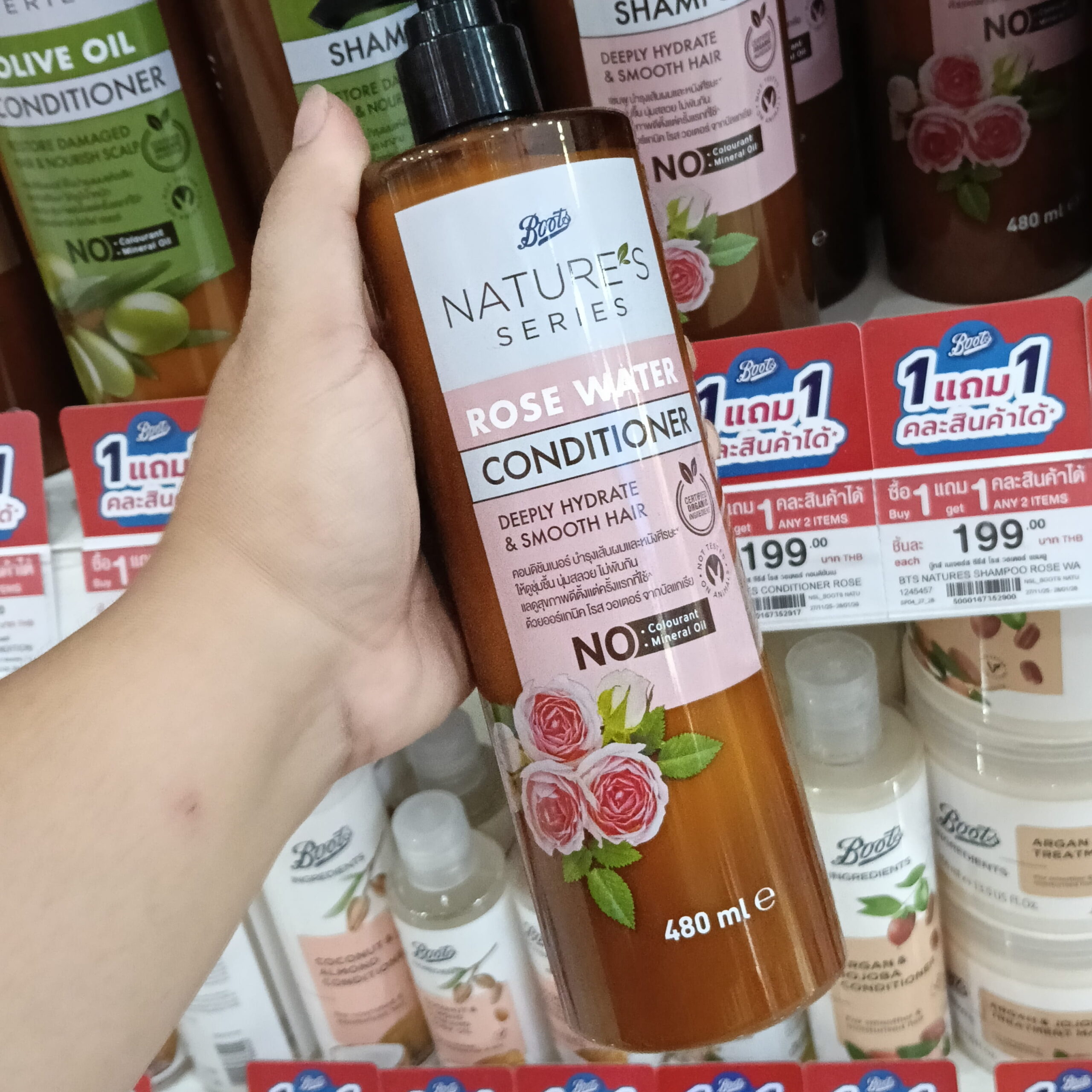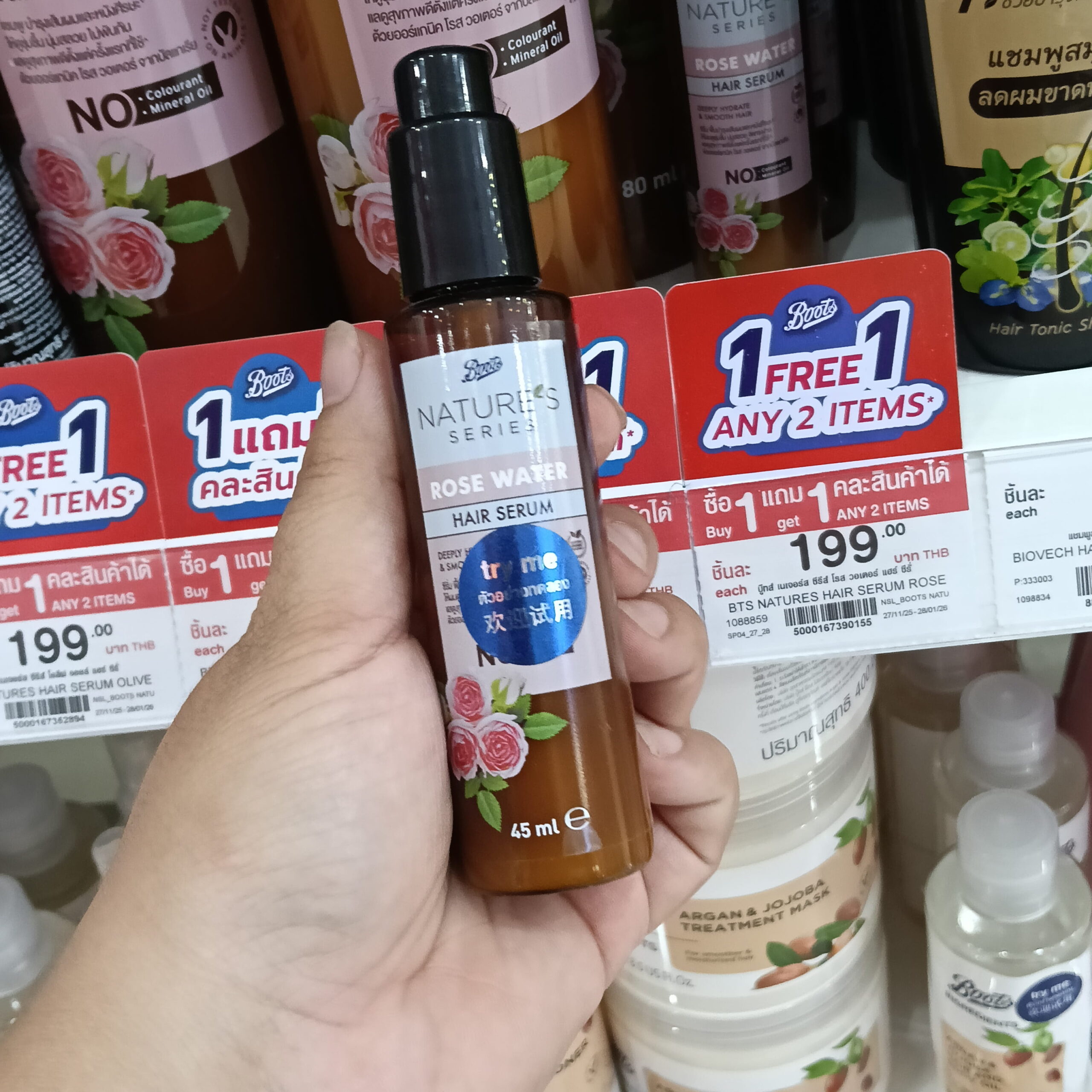 Boots Nature’s Series Rose Water shampoo , conditioner, serum