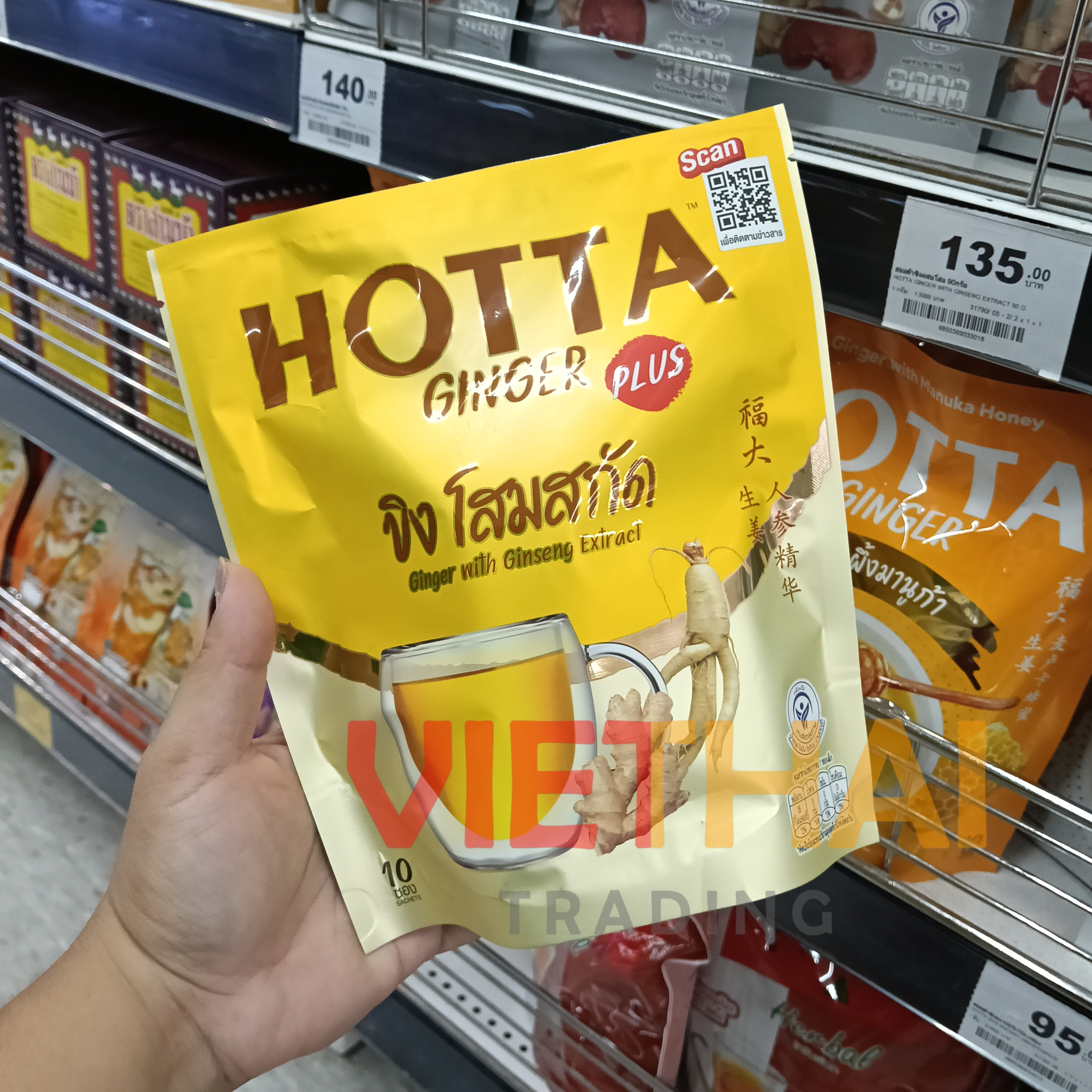 1. Hotta Công thức gốc với chiết xuất Stevia, công thức đậm đặc. Được làm từ gừng chất lượng cao, ủ 11-12 tháng, mang đến hương thơm và vị đậm đà, êm dịu của trà gừng đích thực. Được sản xuất bằng quy trình tiêu chuẩn, sạch sẽ, không chất bảo quản, màu nhân tạo và hương liệu nhân tạo. Hotta với chiết xuất Stevia, công thức đậm đặc, mang đến sự cân bằng hoàn hảo giữa độ đậm đà và độ êm dịu. Lý tưởng cho những người quan tâm đến sức khỏe nhưng vẫn thích một thức uống gừng mạnh mẽ và êm dịu, hoặc những người thực sự yêu thích gừng. Hướng dẫn pha chế: