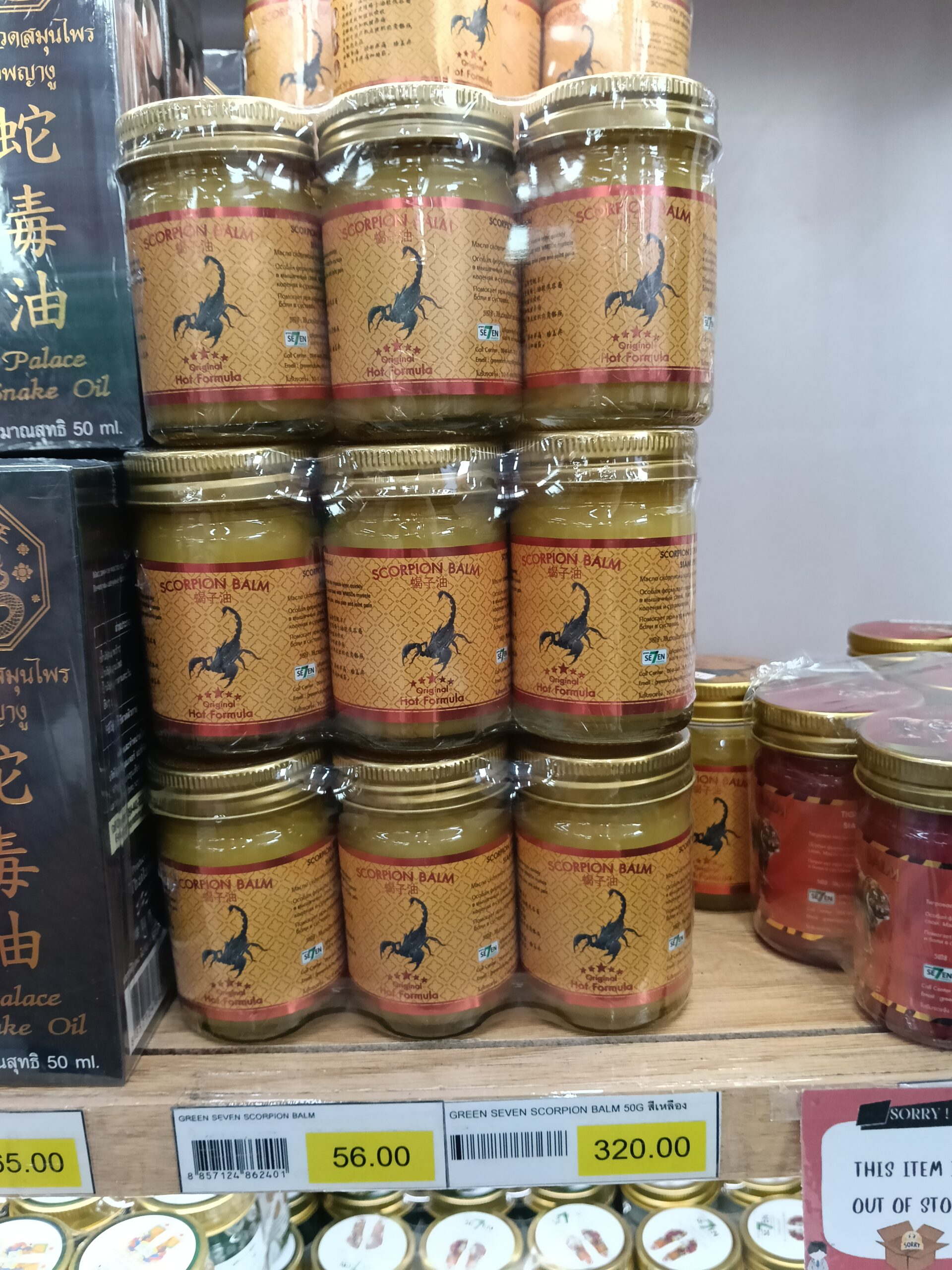 Cao/Dầu cù là Bọ Cạp Scorpion Balm Original Hot Formula của thương hiệu Banna hoặc Green Seven, Thái Lan. Đây là một loại dầu xoa bóp thảo dược nổi tiếng, chuyên biệt trong việc giảm đau nhức cơ xương khớp nhờ công thức nóng mạnh mẽ.