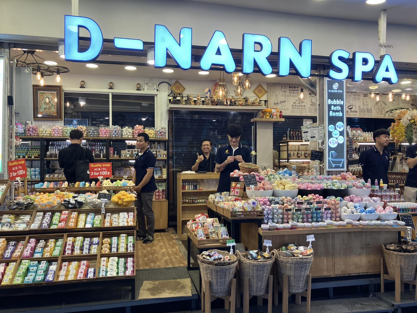 D-Narn Spa là một điểm đến không thể bỏ qua đối với những ai yêu thích các sản phẩm chăm sóc cơ thể chất lượng cao với mức giá phải chăng khi ghé thăm khu chợ sầm uất Chatuchak. Cửa hàng nổi bật với sự đa dạng và mùi hương phong phú của các loại sản phẩm làm đẹp và thư giãn, rất được du khách trong và ngoài nước ưa chuộng.