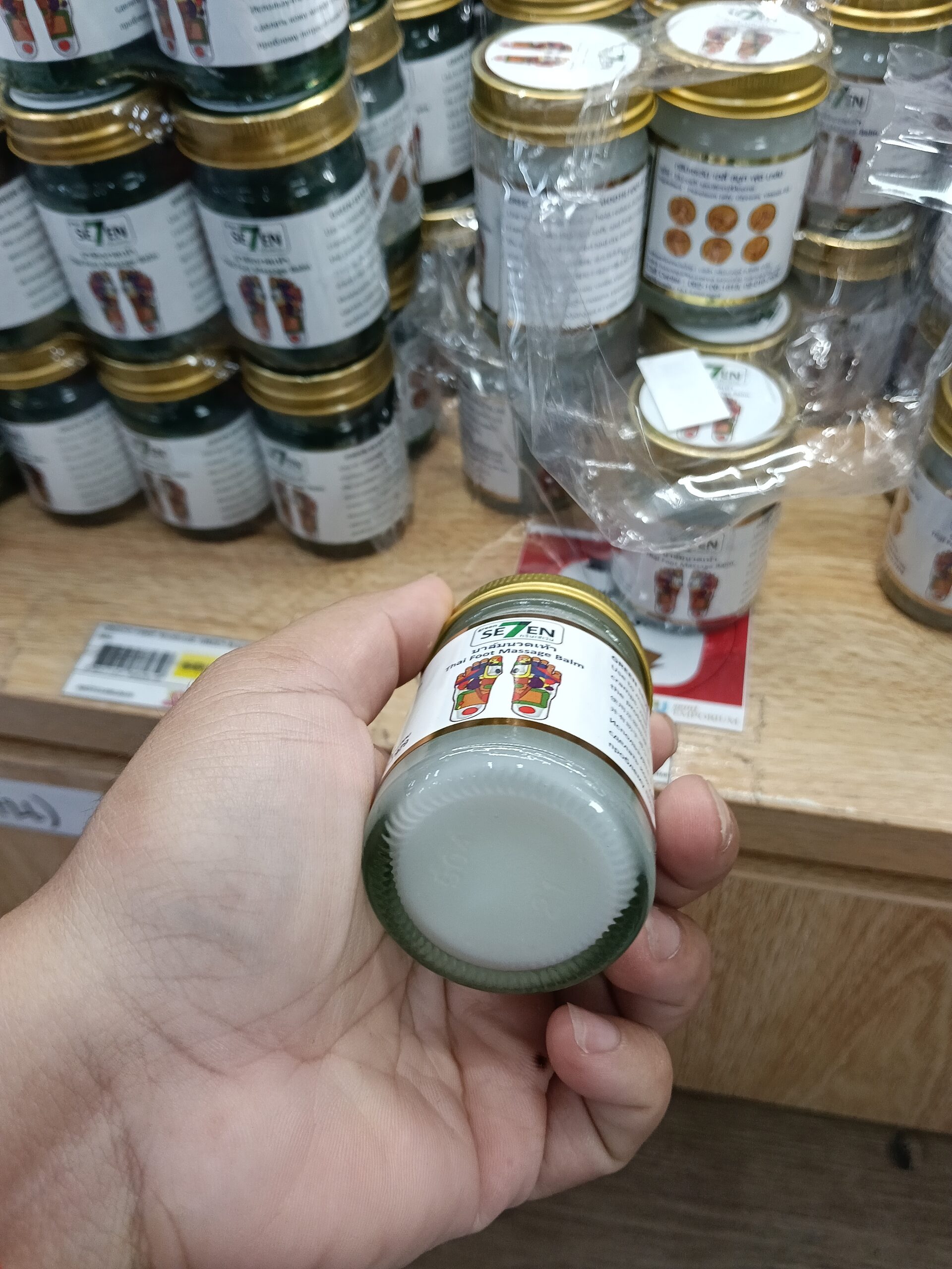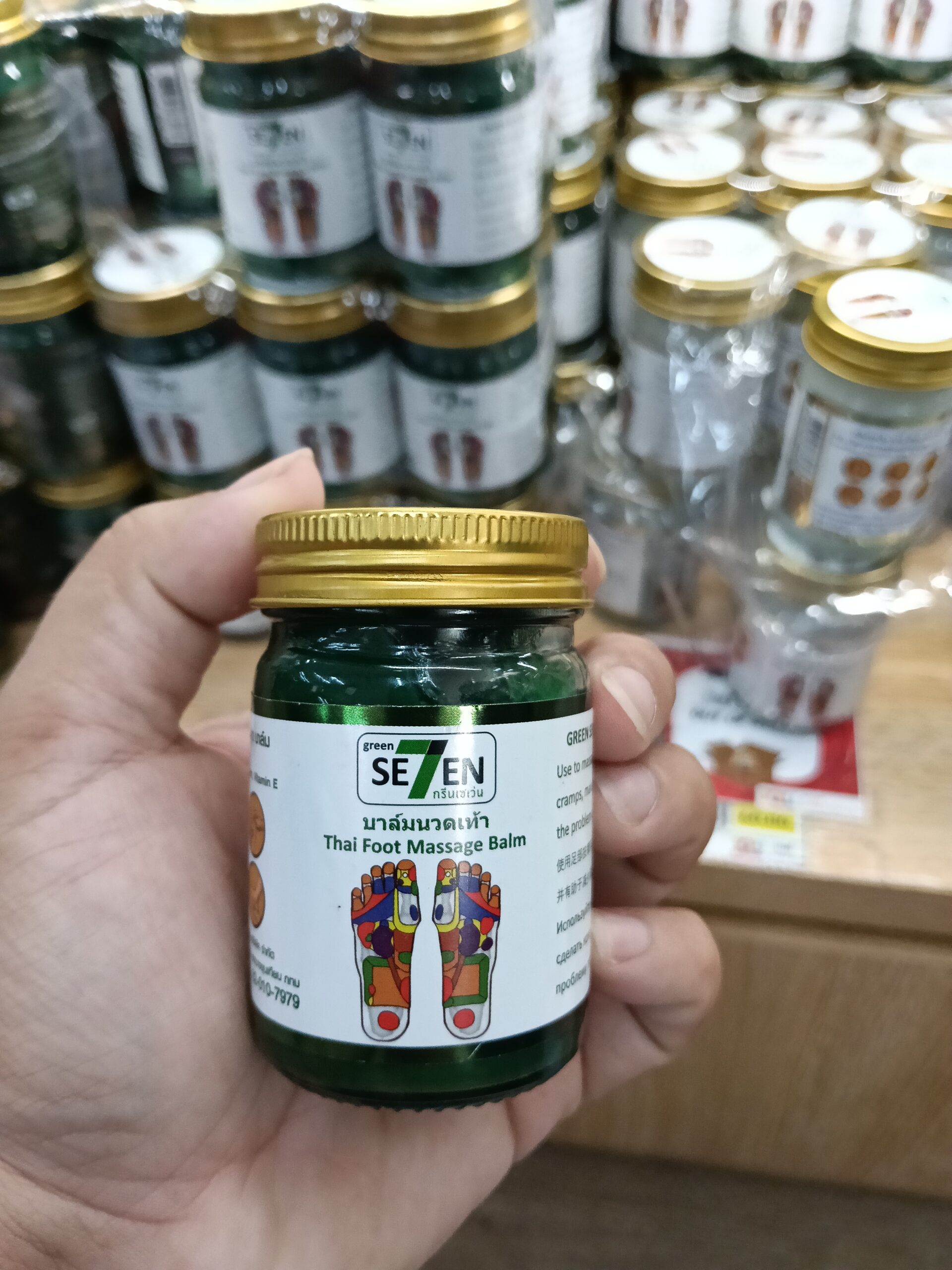 Dầu cù là xoa bóp chân Green Se7en Thai Foot Massage Balm của Thái Lan. Đây là một loại cao xoa bóp thảo dược chuyên biệt, được thiết kế để chăm sóc và phục hồi sức khỏe cho đôi bàn chân mệt mỏi.
