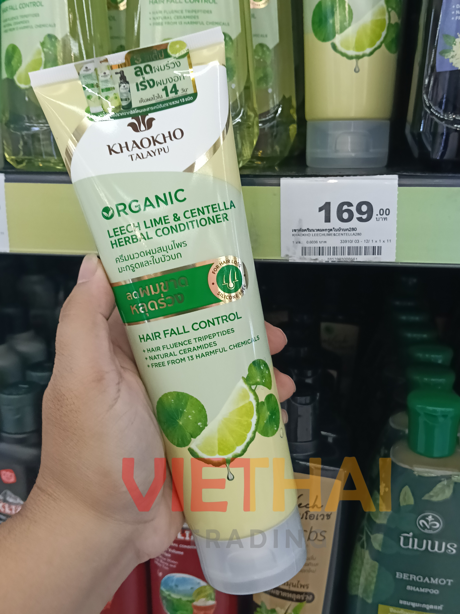 Công thức dầu gội và dầu xả thảo dược độc đáo của Khao Kho dành cho tóc rụng kết hợp sức mạnh của hai loại thảo dược 100% tự nhiên: Chiết xuất axit citric từ chanh kaffir giúp tăng cường chân tóc và ngăn ngừa rụng tóc, trong khi rau má (Centella asiatica) với Tannin và Phytosterol kích thích sự phát triển của chân tóc và sản sinh collagen trên da đầu. Không chứa 9 hóa chất độc hại và silicon, sản phẩm giúp tóc khỏe mạnh và chắc khỏe.
