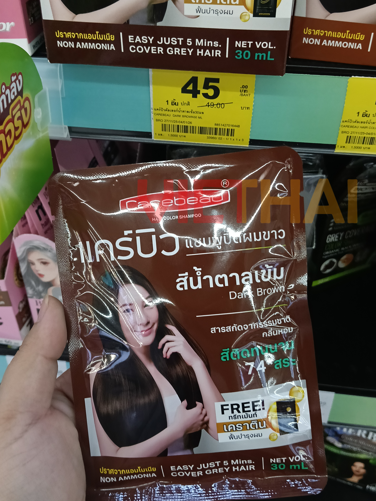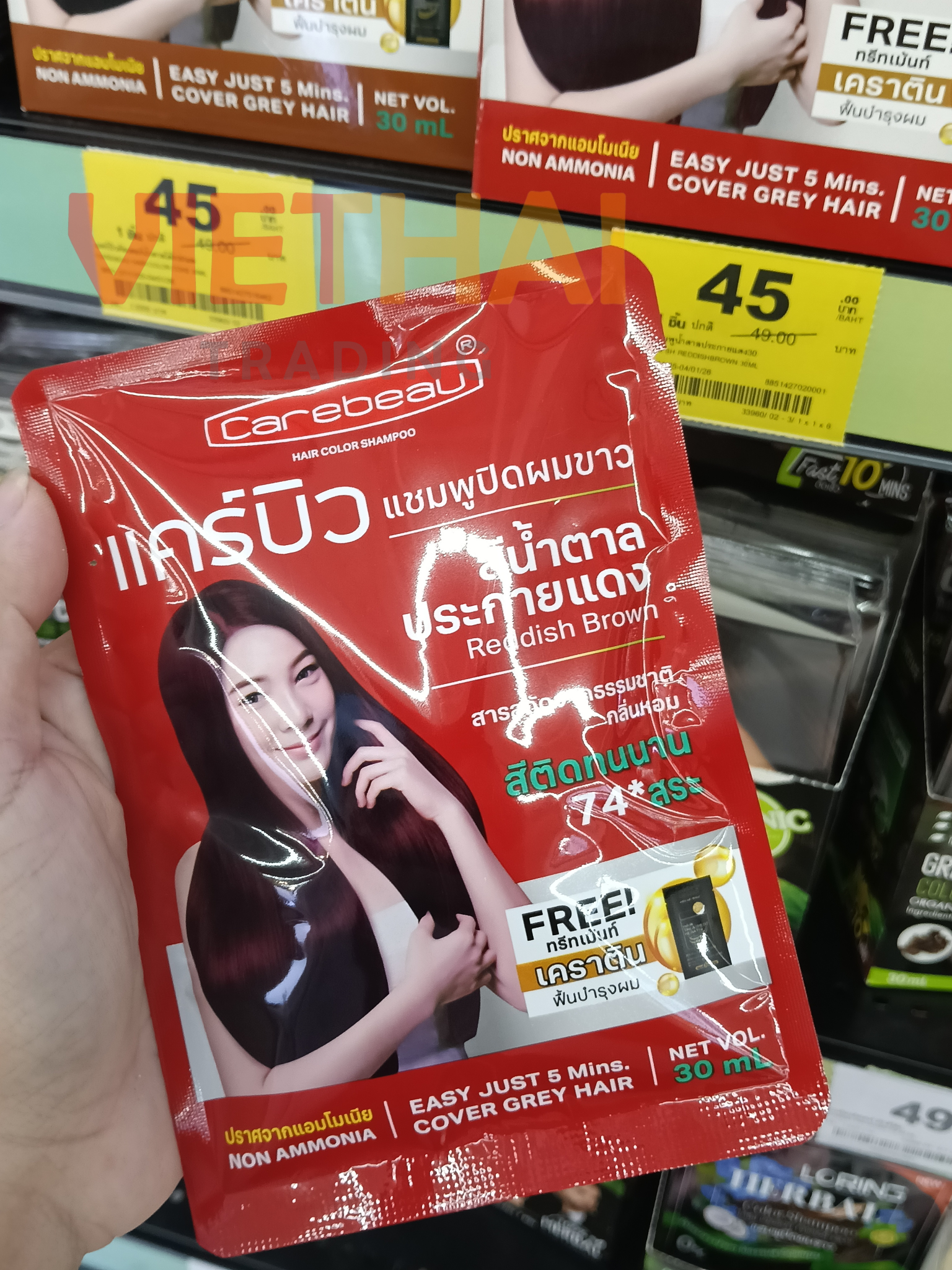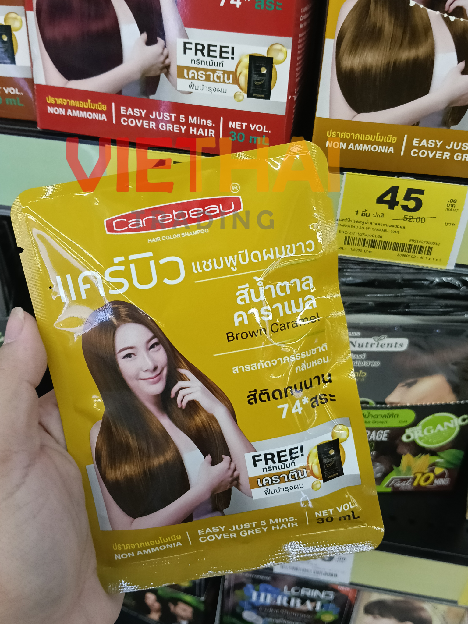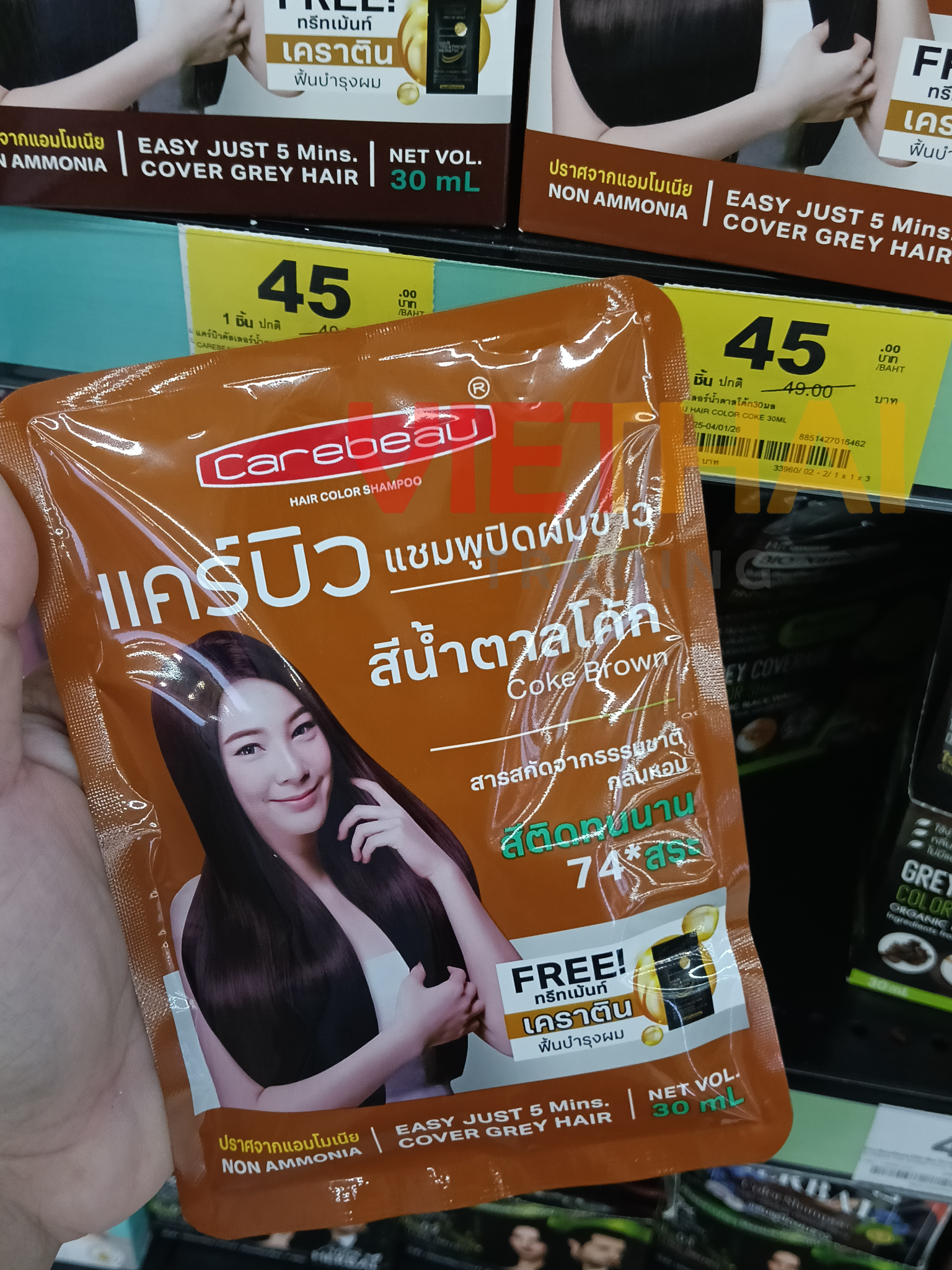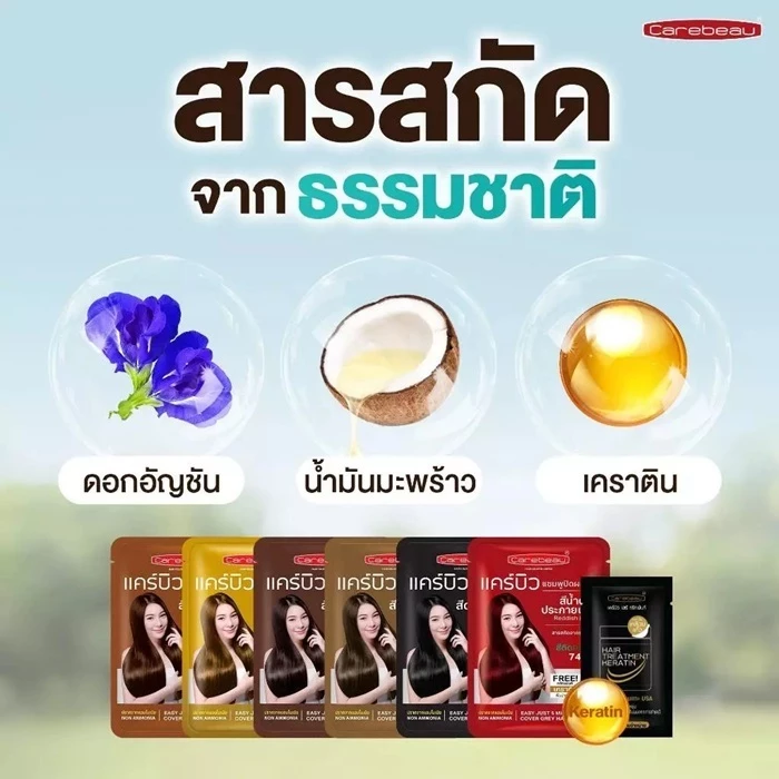 Dầu gội che phủ tóc bạc không chứa amoniac Carebeau mang lại màu sắc bền lâu chỉ sau một lần gội và có hương thơm tự nhiên. Sản phẩm chứa các chiết xuất tự nhiên như dầu dừa, chiết xuất hoa đậu bướm và keratin tự nhiên để nuôi dưỡng và phục hồi tóc. Điều này giúp cải thiện sức khỏe da đầu, tăng cường chân tóc, ngăn ngừa gàu, giảm rụng tóc và phục hồi tóc hư tổn do nhuộm. Anthocyanin tự nhiên kích thích lưu lượng máu đến chân tóc, giúp tóc chắc khỏe và mang lại màu tóc đen bóng mượt. Keratin trong công thức có các phân tử nhỏ thẩm thấu vào lớp biểu bì tóc, bảo vệ tóc khỏi hư tổn và giúp tóc mềm mại, mượt mà và bóng khỏe. Quan trọng hơn, sản phẩm che phủ tóc bạc hiệu quả và dễ sử dụng, tiết kiệm thời gian.