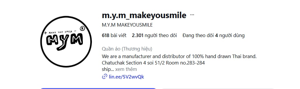 MY.M (Make You Smile) là một thương hiệu thời trang Thái Lan nổi tiếng với phong cách độc đáo và nghệ thuật, bán các sản phẩm may mặc và phụ kiện với họa tiết in hình sống động.