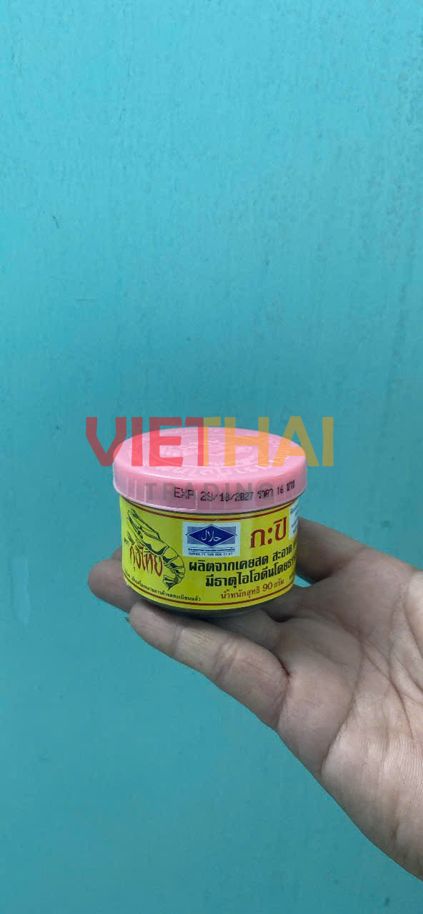 Sản phẩm trong hình là Mắm ruốc (กะปิ), một loại gia vị không thể thiếu trong nền ẩm thực phong phú của Thái Lan, đến từ thương hiệu uy tín Kung Thai (กุ้งไทย, nghĩa là “Tôm Thái”). Sản phẩm được biết đến với chất lượng cao và hương vị đậm đà, mang đến sự tiện lợi cho người dùng khi chế biến các món ăn chuẩn vị Thái.
