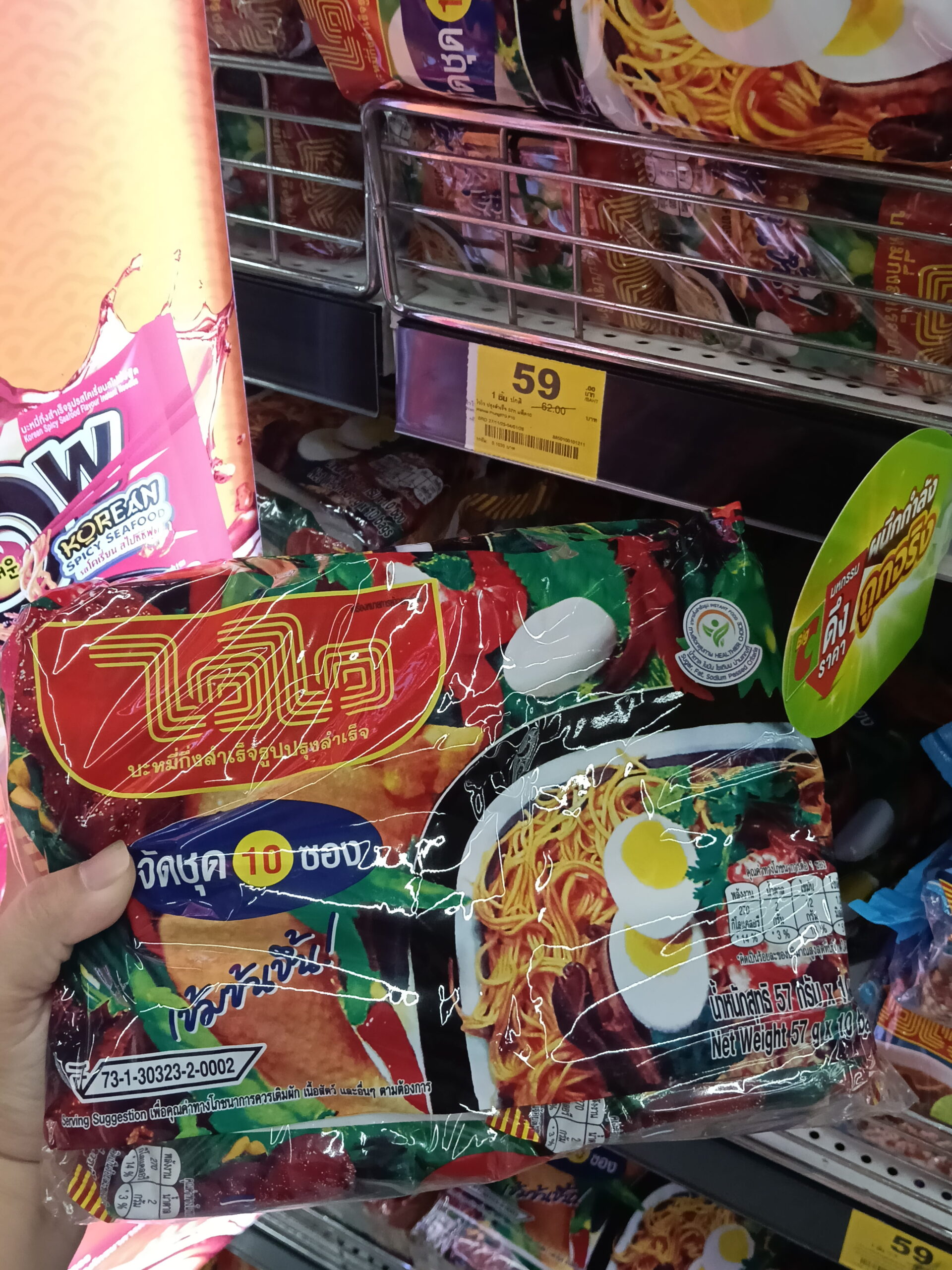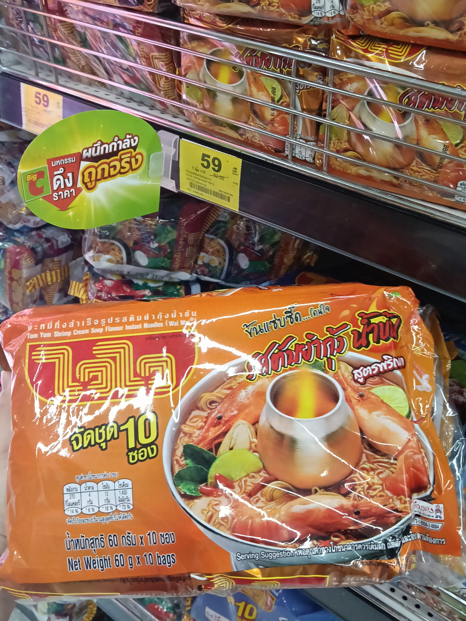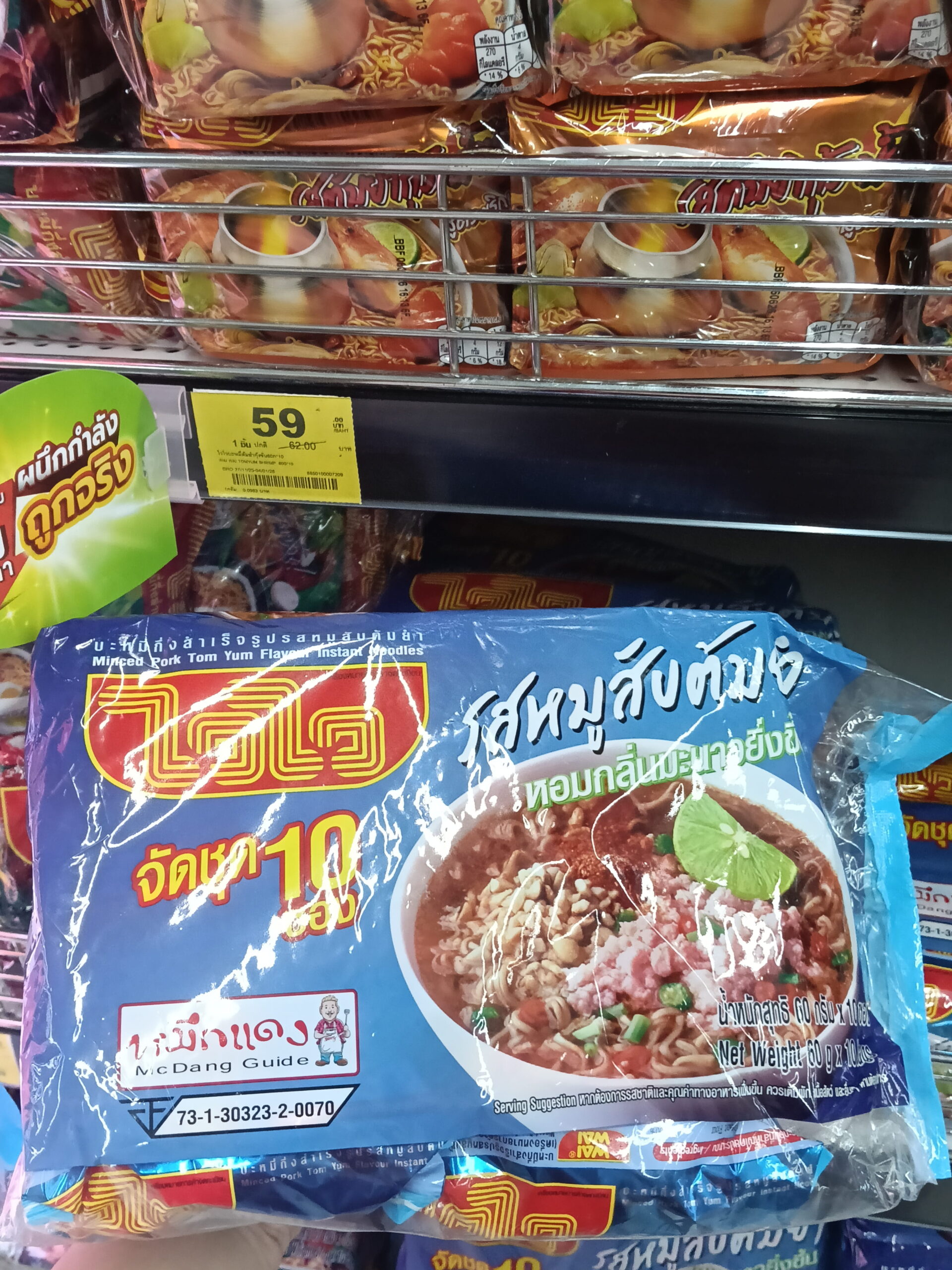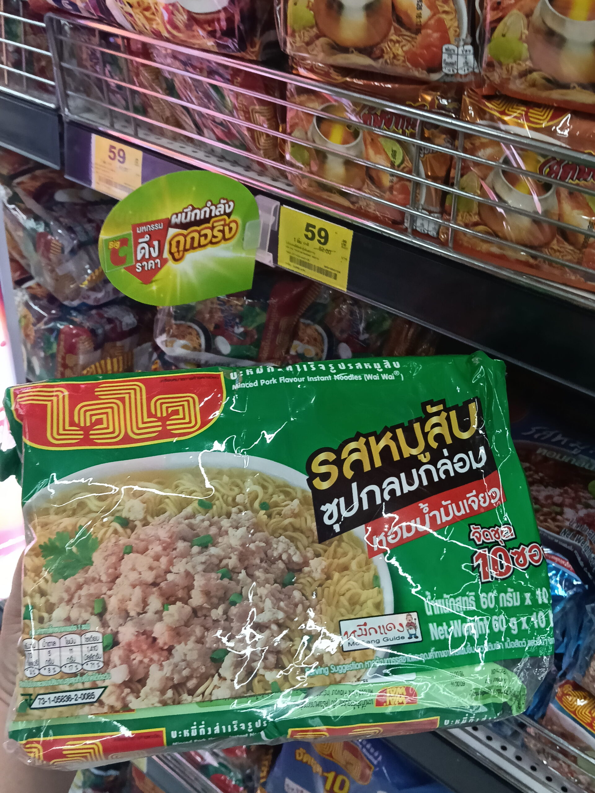 Mì gói ăn liền Wai Wai hương vị Thịt heo bằm Tôm chua cay (Minced Pork Tom Yum Flavour Instant Noodles). Đây là một dòng sản phẩm mì ăn liền rất được ưa chuộng tại Thái Lan.
