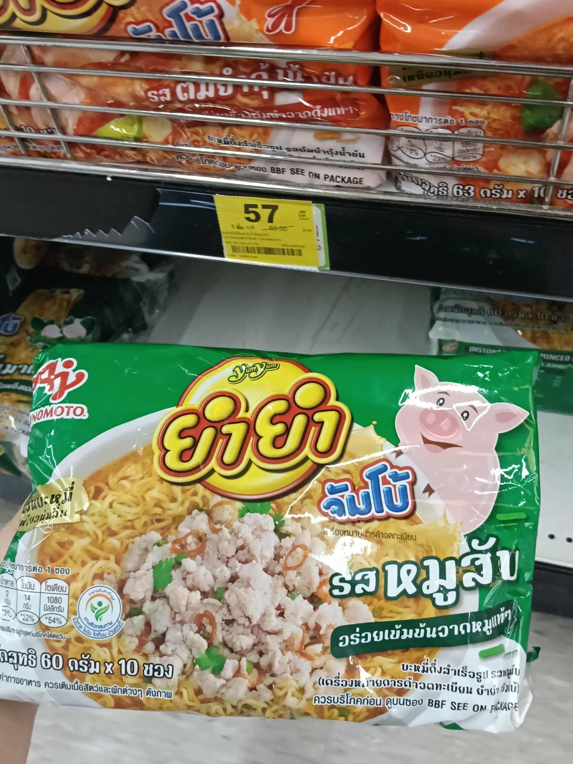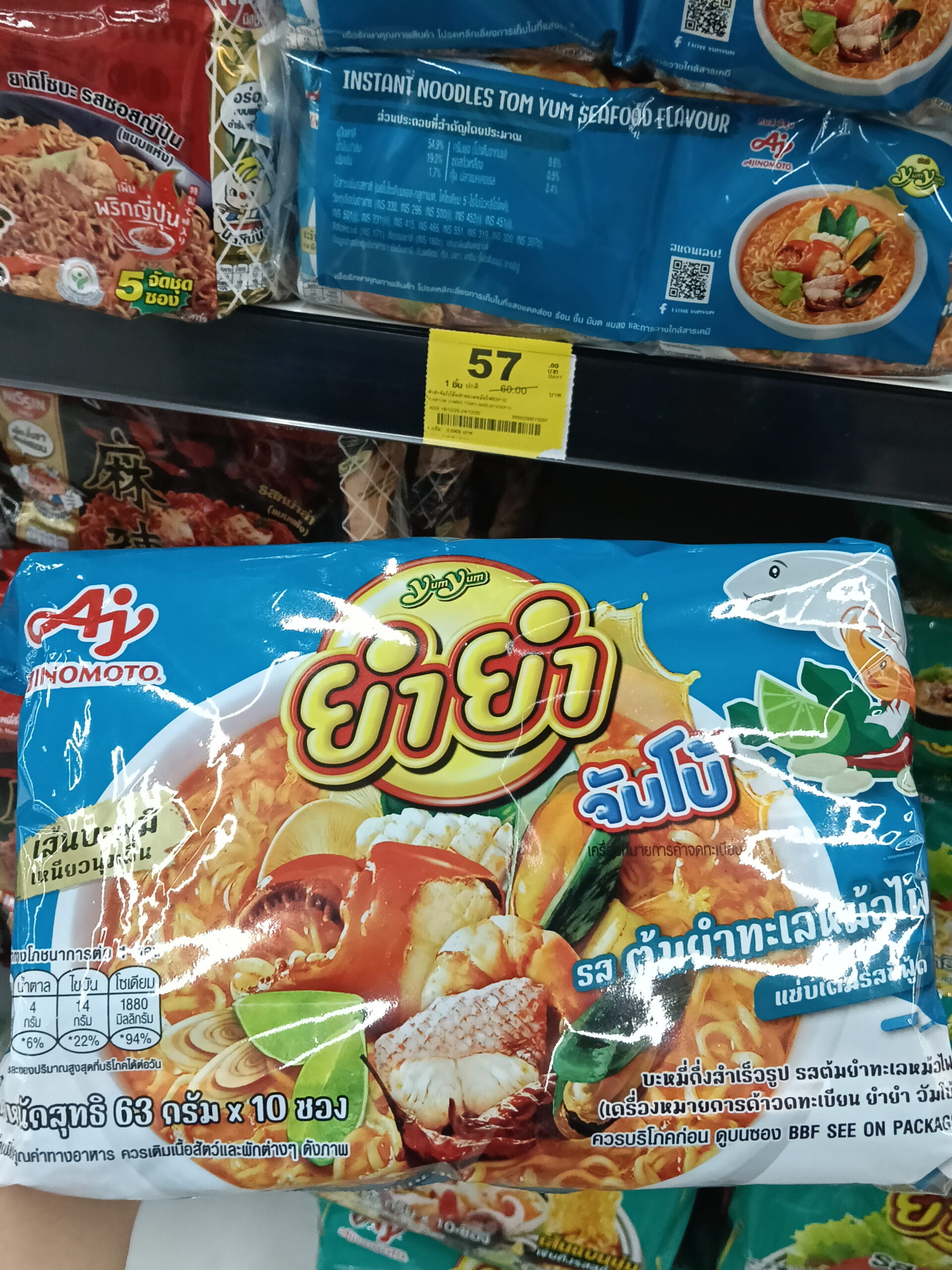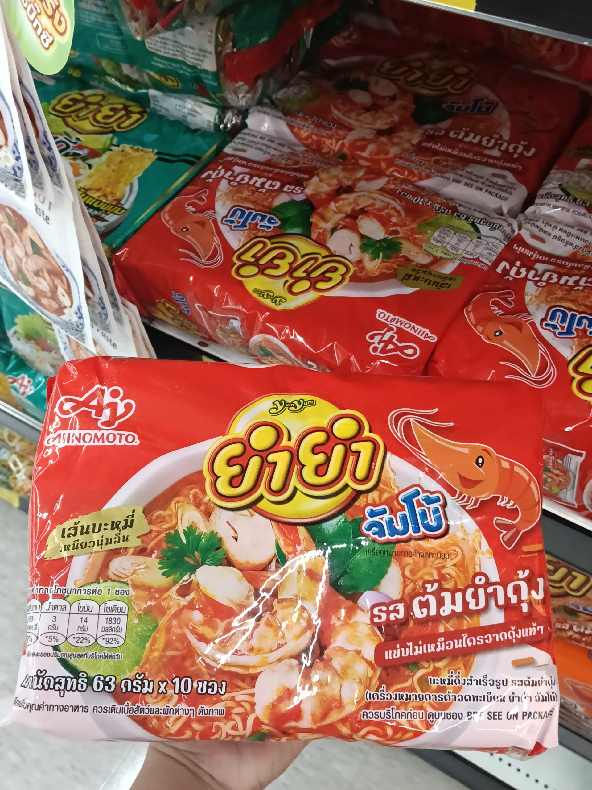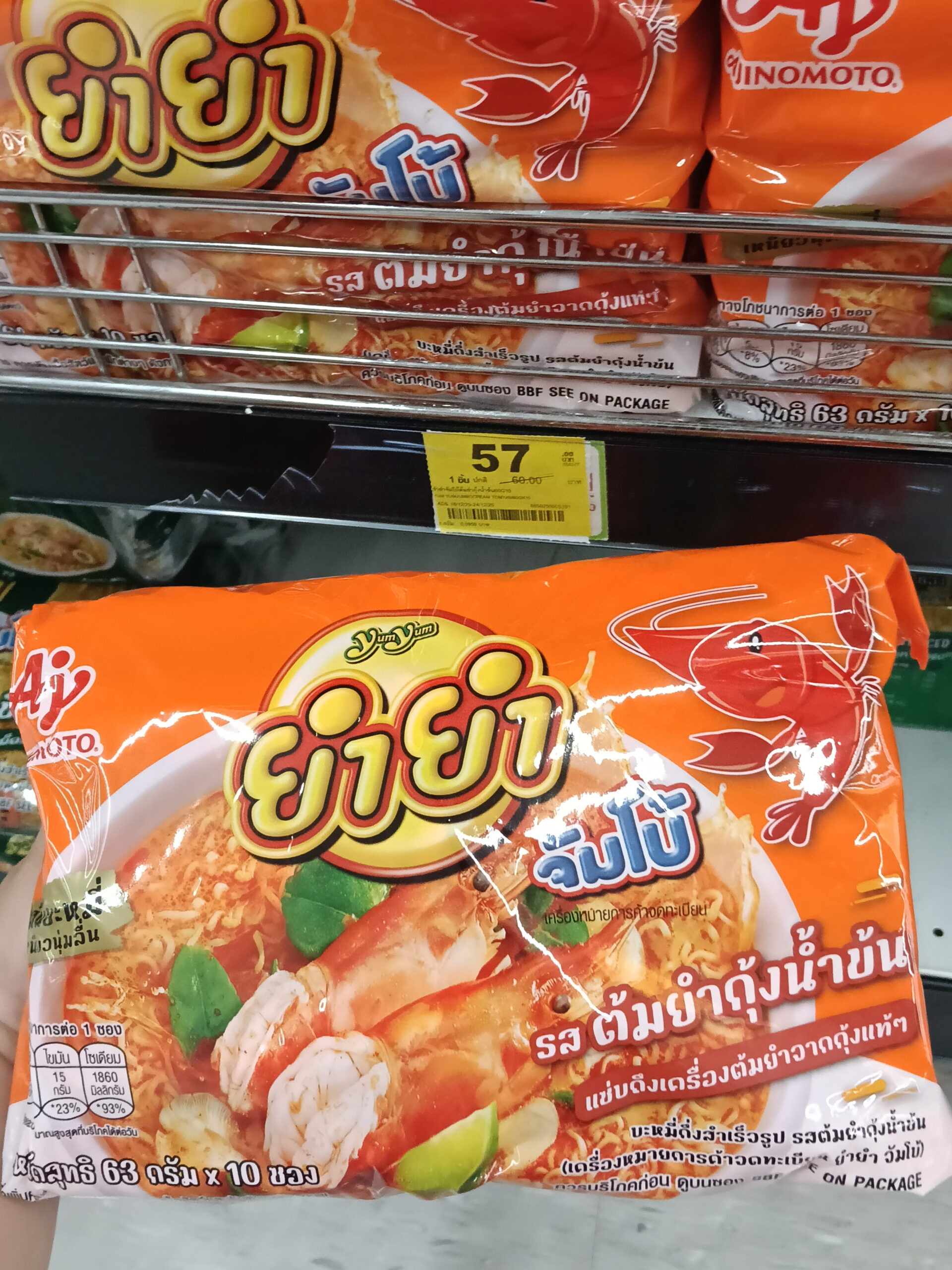 Mì gói ăn liền YumYum Jumbo hương vị Tôm Chua Cay Nước Đục (Creamy Tom Yum Kung Flavour). Đây là dòng mì lẩu Thái nổi tiếng của thương hiệu YumYum (thuộc Ajinomoto Thái Lan), được ưa chuộng vì hương vị đậm đà và chuẩn vị Tom Yum truyền thống Thái Lan.