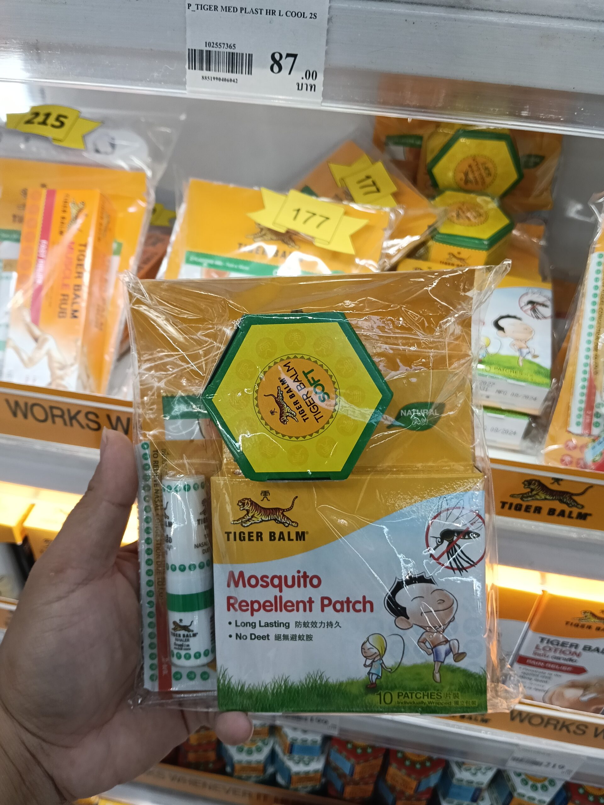Sản phẩm trong hình là Miếng dán chống muỗi Tiger Balm (Tiger Balm Mosquito Repellent Patch), một giải pháp tiện lợi và hiệu quả để xua đuổi muỗi.