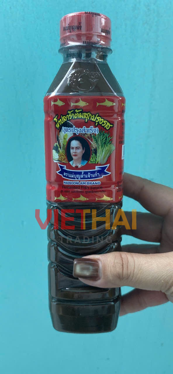 Nước mắm cá cơm lên men Mae Boonlam (còn gọi là Nam Pla Ra), một loại gia vị nổi tiếng của Thái Lan, thiết yếu để tạo nên hương vị đậm đà cho nhiều món ăn. Đây là phiên bản nắp đỏ, thuộc công thức pha sẵn (Ready-to-use Formula), chuyên dùng cho các món gỏi, trộn hoặc xào.