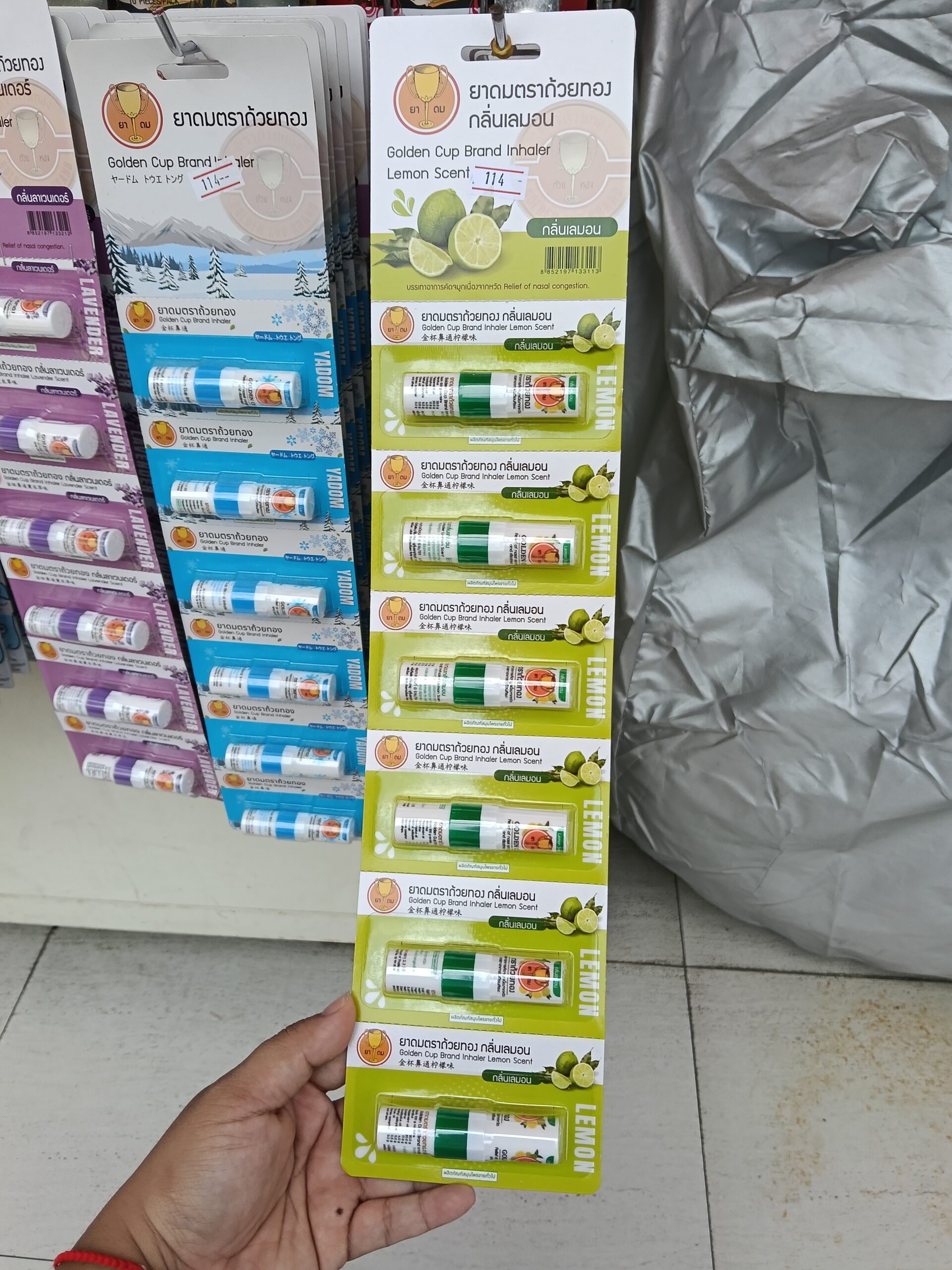 Ống hít thông mũi Golden Cup Brand Inhaler, một sản phẩm chăm sóc sức khỏe thảo dược phổ biến có xuất xứ từ Thái Lan. Sản phẩm này được thiết kế nhỏ gọn, tiện lợi để mang theo bên mình và sử dụng mọi lúc mọi nơi.