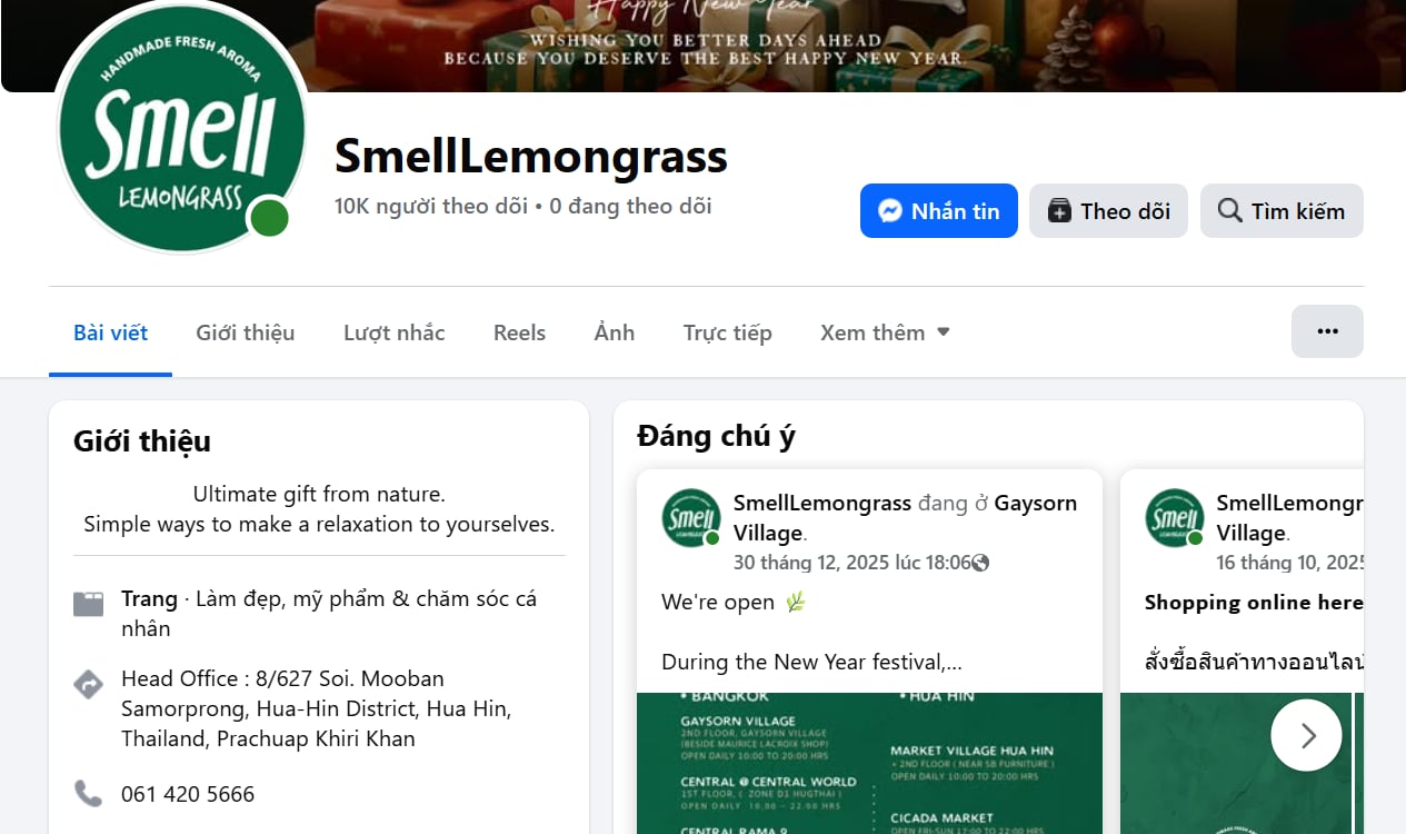 Smell Lemongrass là một thương hiệu địa phương nổi tiếng, chuyên cung cấp các giải pháp thơm mát tự nhiên cho không gian sống và chăm sóc cá nhân.
