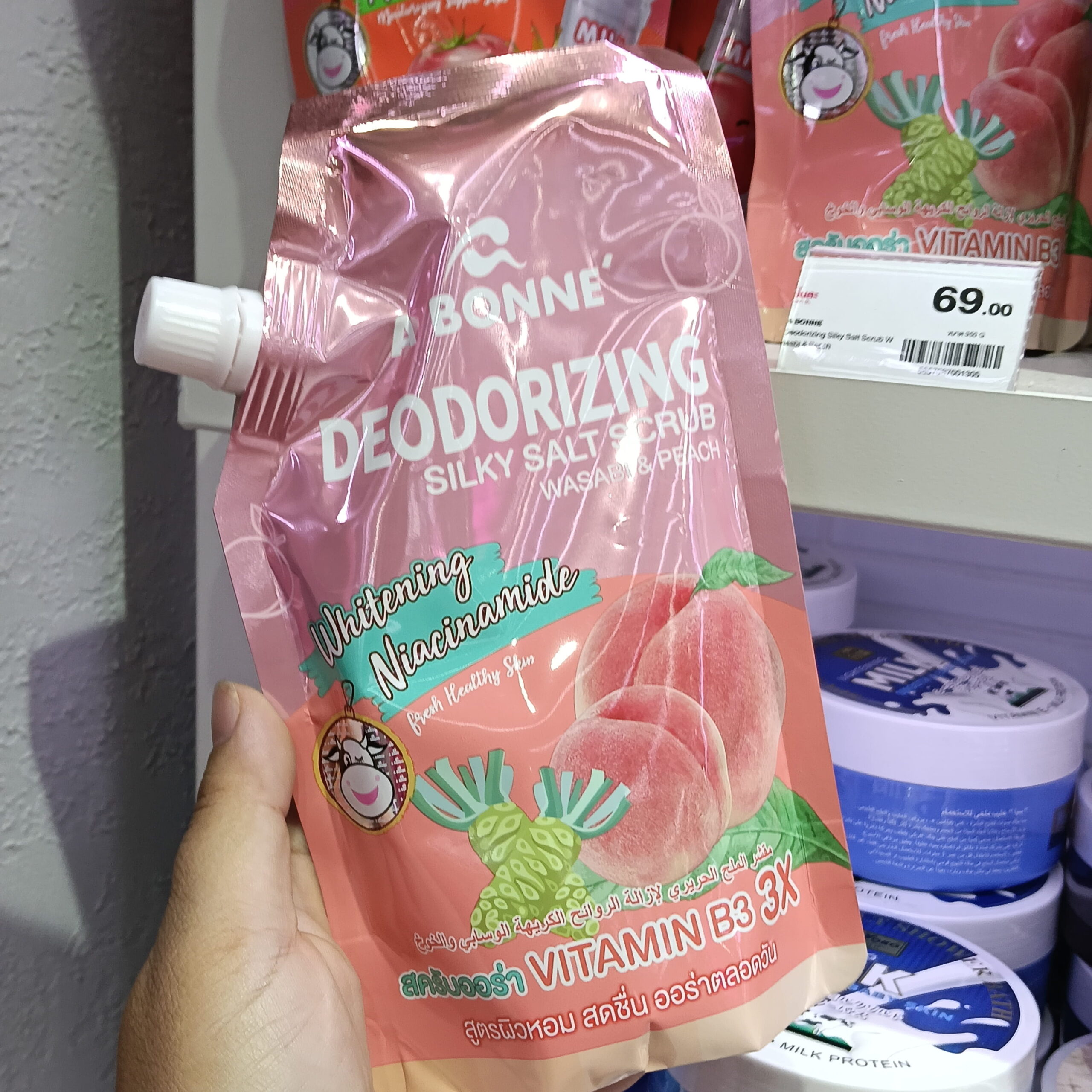 Nếu bạn đang tìm kiếm một loại muối tắm không chỉ làm mịn da mà còn giúp cơ thể luôn thơm tho, sạch sẽ, thì A Bonne’ Deodorizing Silky Salt Scrub Wasabi & Peach chính là câu trả lời hoàn hảo. Đây là sự kết hợp độc đáo giữa hương vị thanh mát của Wasabi và sự ngọt ngào của Đào mọng nước.1. Điểm Khác Biệt: Khả Năng Khử Mùi (Deodorizing)