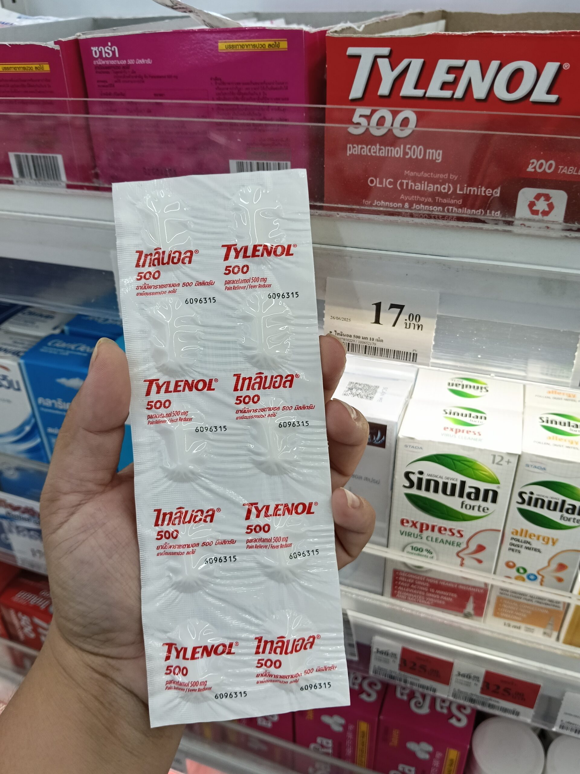 Thuốc Tylenol 500 mg (Paracetamol) là một loại thuốc giảm đau và hạ sốt không kê đơn phổ biến, được sản xuất tại Thái Lan bởi OLIC (Thailand) Limited cho Johnson & Johnson (Thailand) Ltd.. Sản phẩm được sử dụng rộng rãi trong các gia đình để điều trị các triệu chứng đau và sốt từ nhẹ đến vừa.
