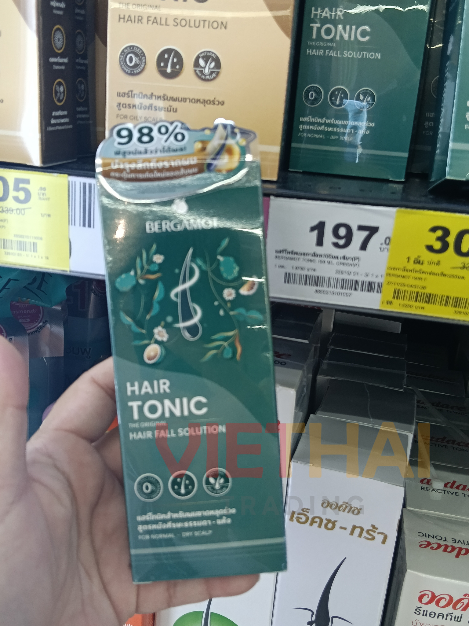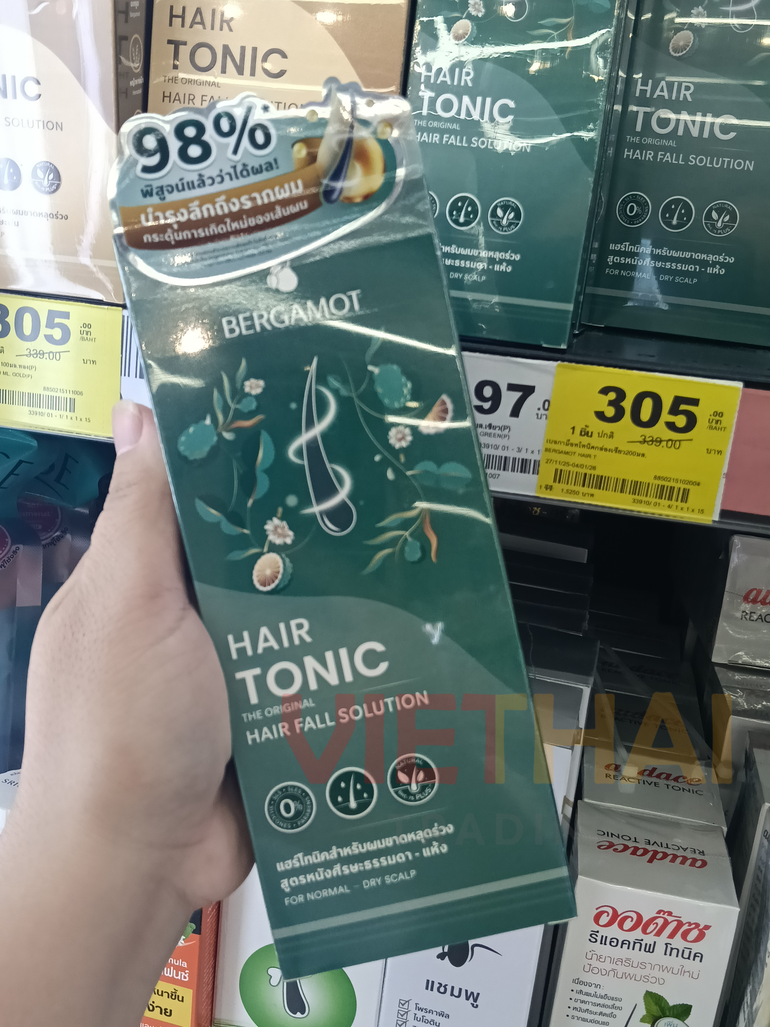 Một sản phẩm thuần khiết, hoàn toàn tự nhiên đã chinh phục người dân Thái Lan hơn ba thập kỷ qua. Được phát triển thông qua quá trình nghiên cứu và thử nghiệm tỉ mỉ bởi các chuyên gia về sức khỏe da đầu và tóc của BERGAMOT®, sản phẩm này được làm giàu với công thức BHC-75 (Bergamot Hair Complex) độc đáo, chiết xuất từ nhiều loại thảo dược. Sản phẩm kích thích chức năng da đầu và tăng cường chân tóc, giảm rụng tóc và tóc mỏng do căng thẳng, chân tóc yếu và thiếu dưỡng chất. Đồng thời, sản phẩm giúp giảm thiểu và chống lại sự phát triển của vi khuẩn và nấm trên da đầu, nuôi dưỡng chân tóc bị viêm và yếu, kích thích sự phát triển của tóc mới, chắc khỏe.