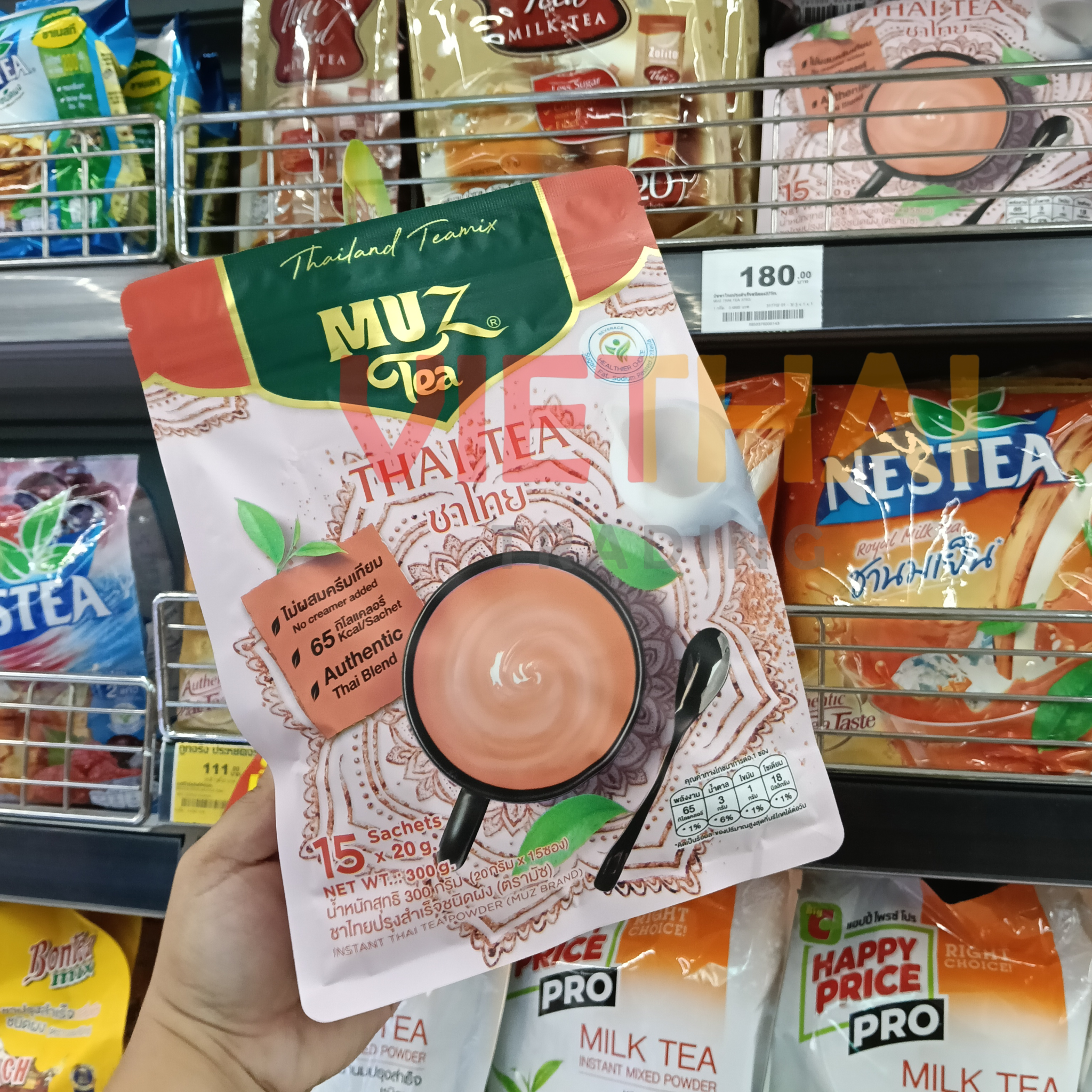 ✅ A: Được làm từ trà đen chất lượng cao, không chất tạo béo nhân tạo, không chất béo chuyển hóa, pha với sữa tách béo thật và được làm ngọt bằng đường hoa dừa.