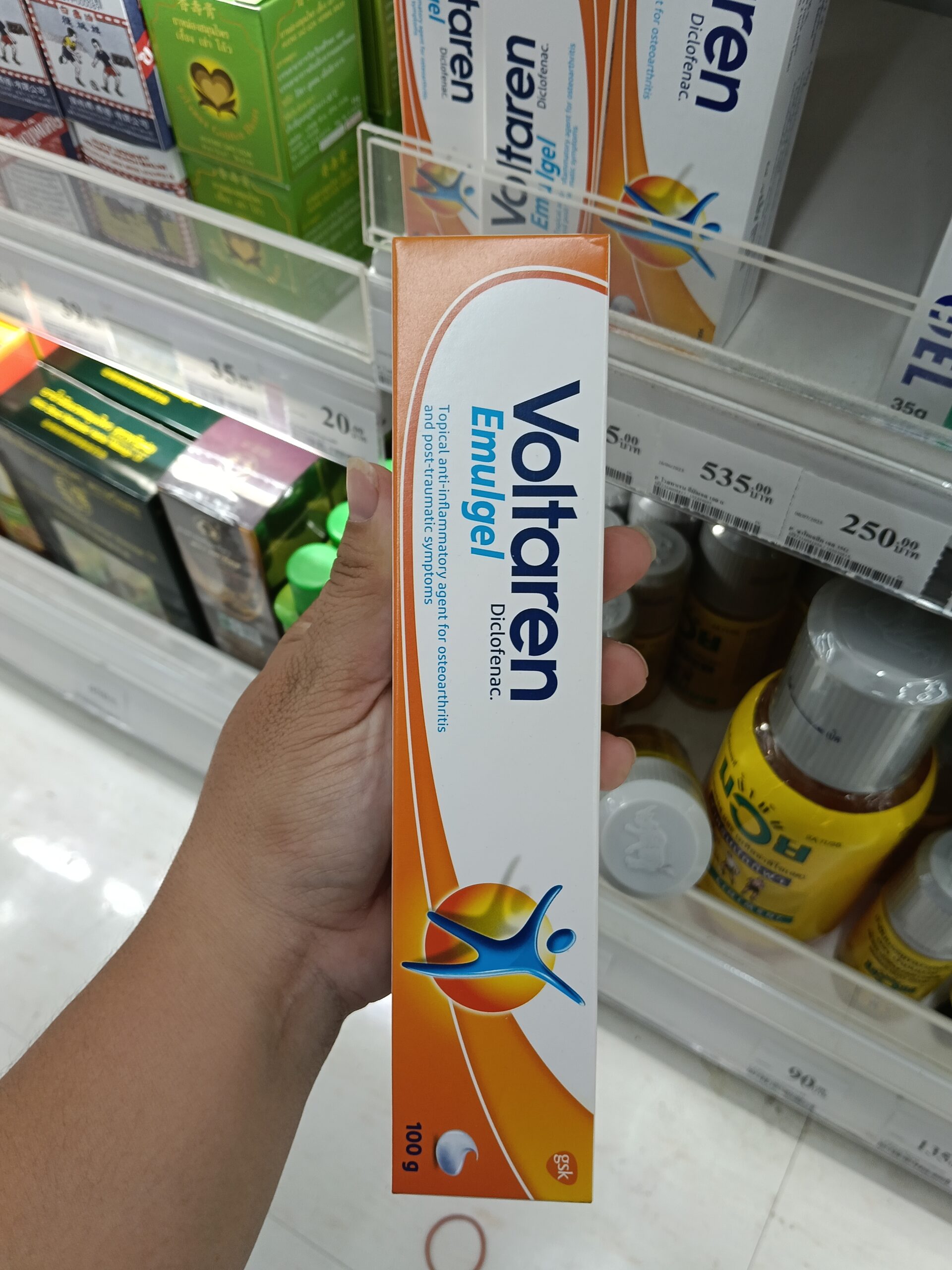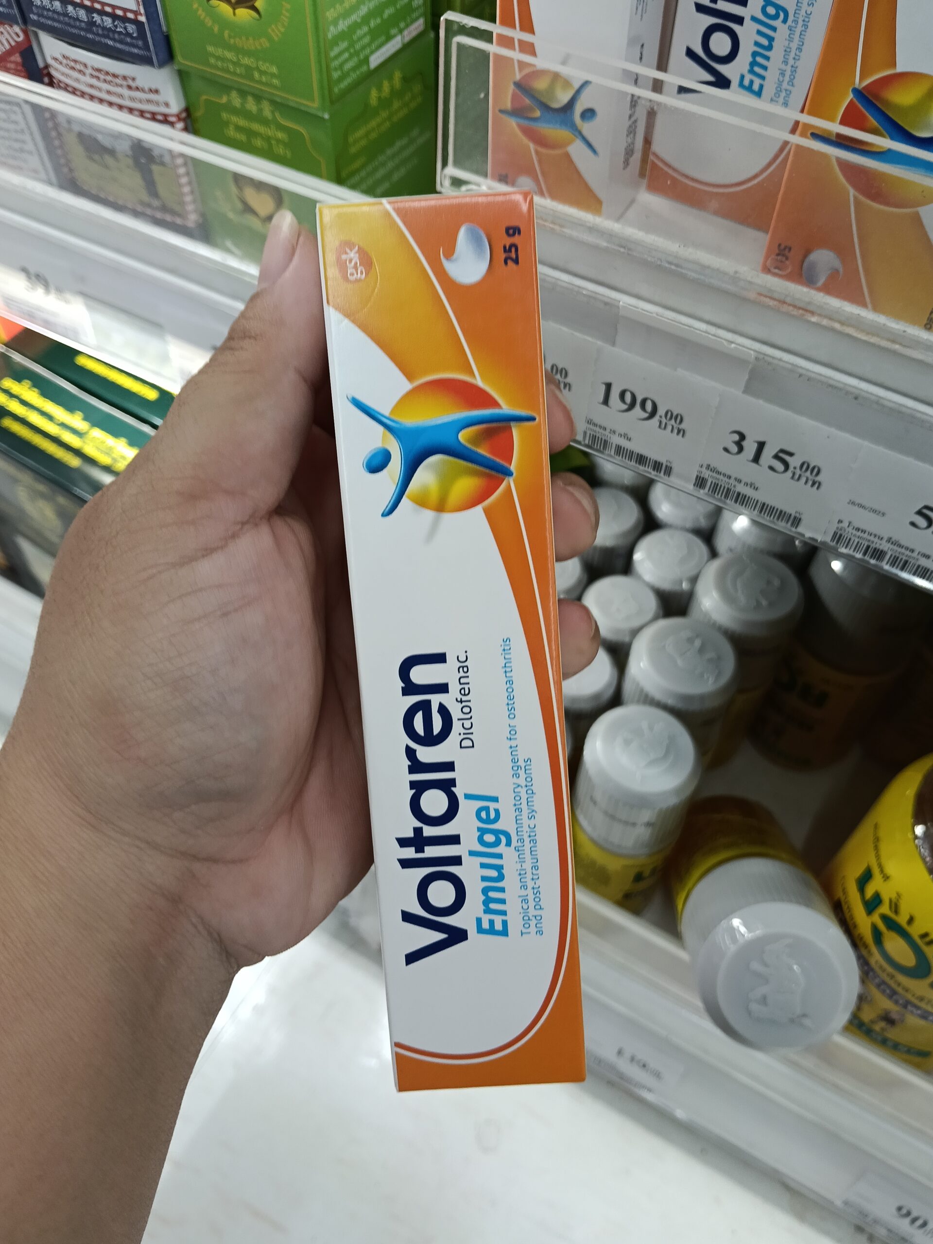Voltaren Emulgel Back & Muscle Pain (gel Voltaren giảm đau lưng và cơ). Đây là một loại gel bôi ngoài da chứa hoạt chất Diclofenac (dưới dạng diclofenac diethylamine 1,16%), thuộc nhóm thuốc kháng viêm không steroid (NSAID), chuyên dùng để giảm đau, kháng viêm và giảm sưng tấy tại chỗ.