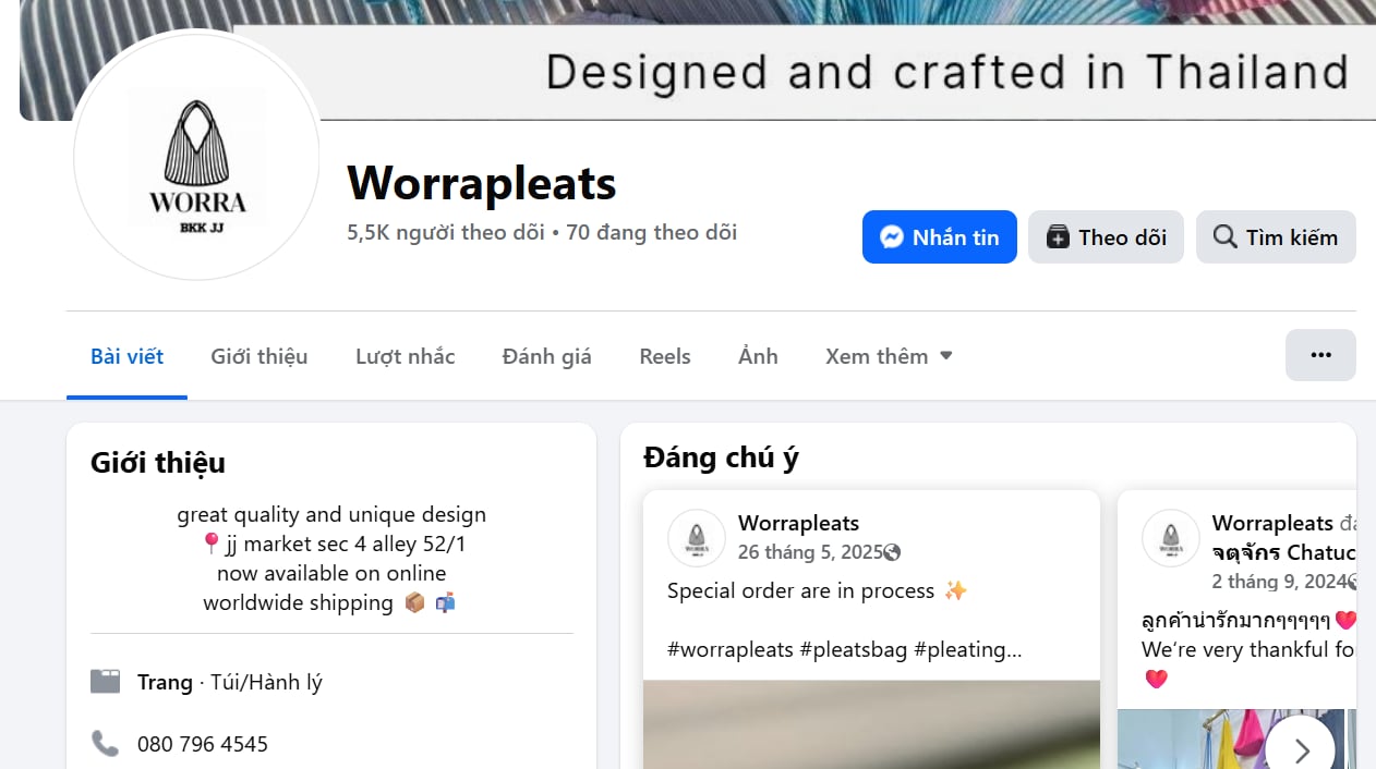 Worrapleats là một cửa hàng chuyên bán túi xách xếp ly (pleated bags) độc đáo, thời trang được sản xuất tại Thái Lan.