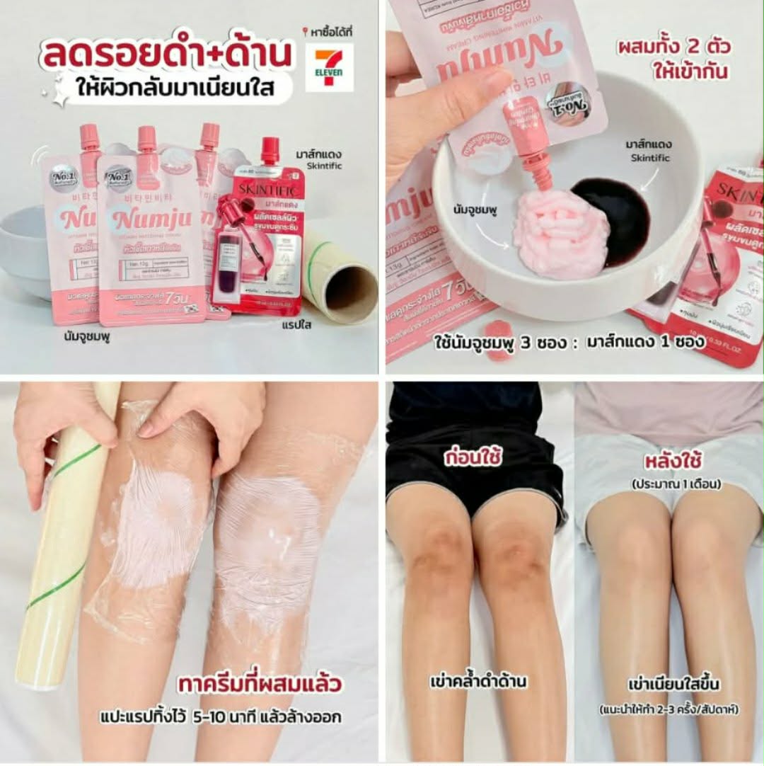 - Numju hồng: Đây là dòng kem dưỡng trắng cô đặc chứa Vitamin nồng độ cao từ Hàn Quốc. Nó không chỉ làm trắng mà còn giúp da vùng cổ mịn màng, giảm nếp nhăn rõ rệt.